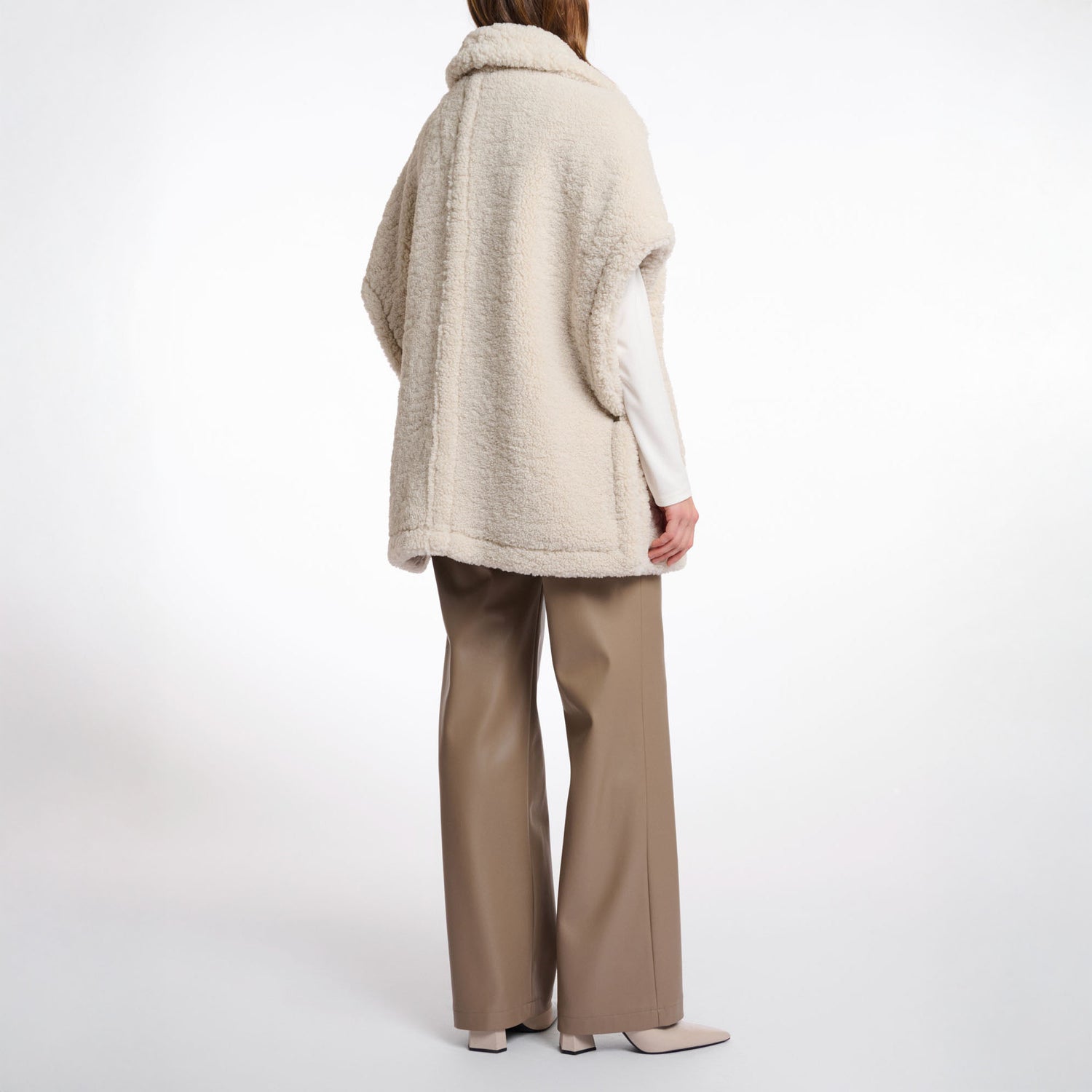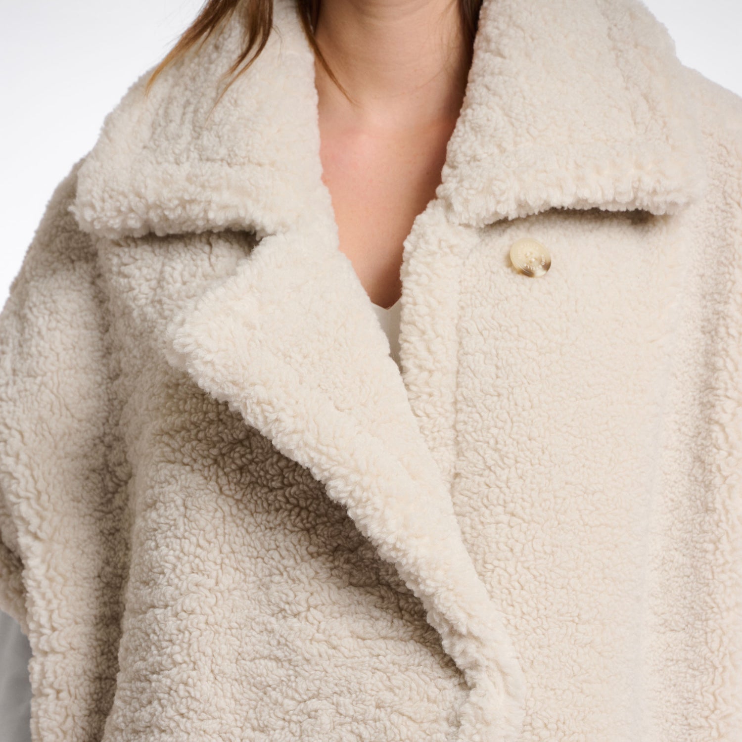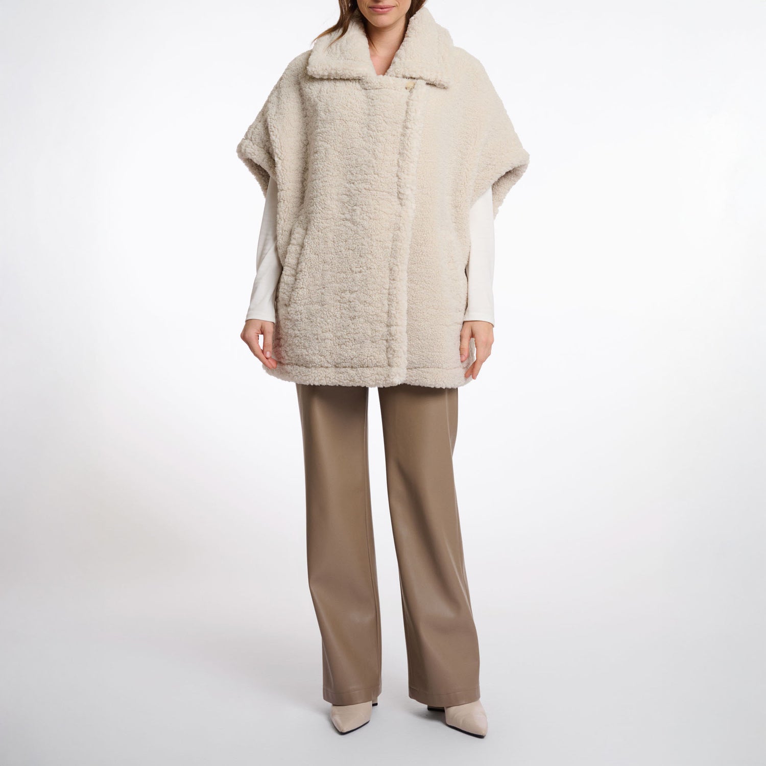 Winter is on the way and there's no better way to stay warm and toasty then in this Luca Teddy Cape. This boxy cape features side slit pockets, a button closure, low shoulder lines and a lapel collar.
