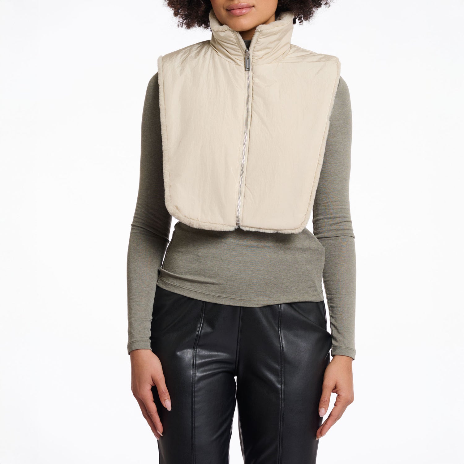 RINO & PELLE Nura Reversible Bib with Faux Fur in Birch