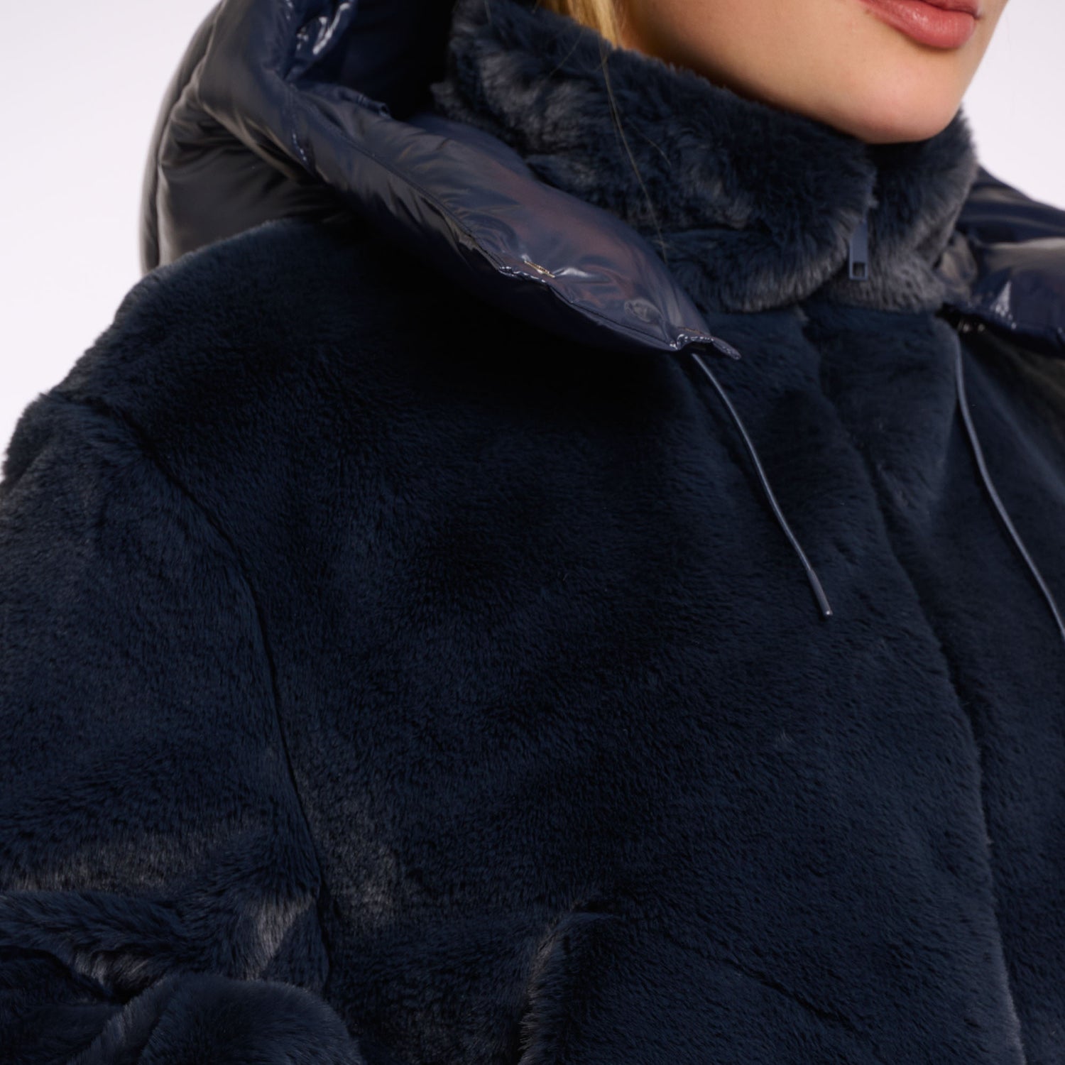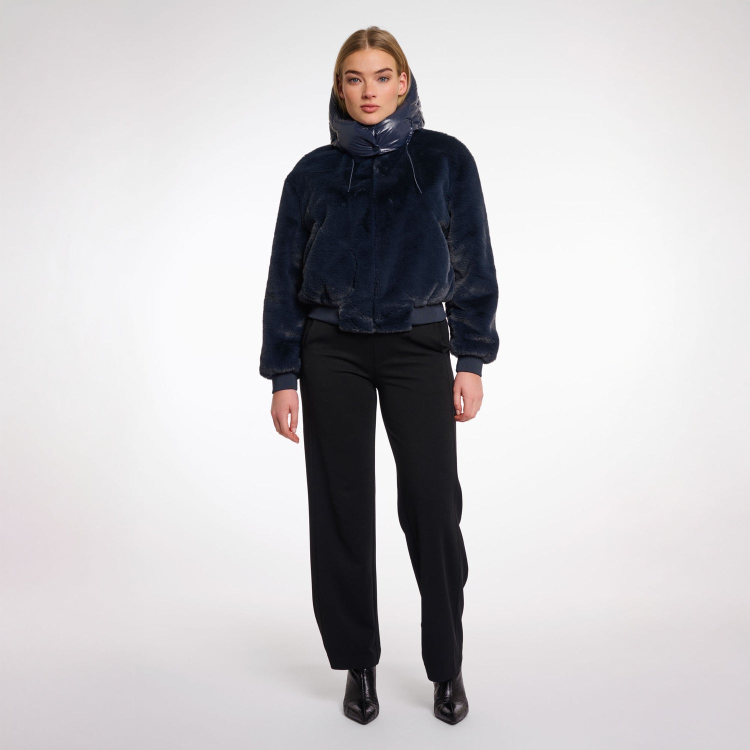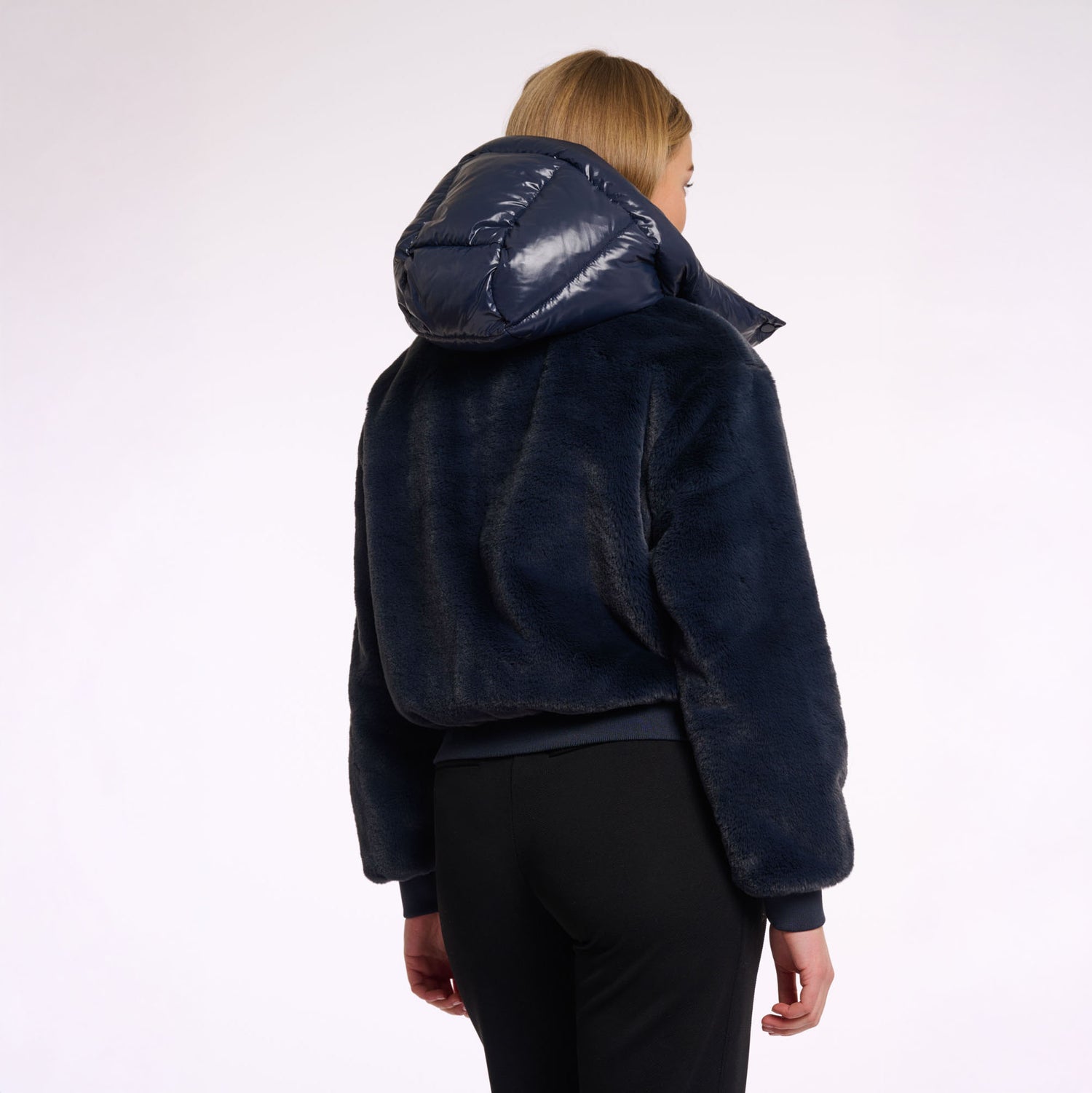 RINO & PELLE Pia Short Faux Fur Jacket with Hood in Night Grey