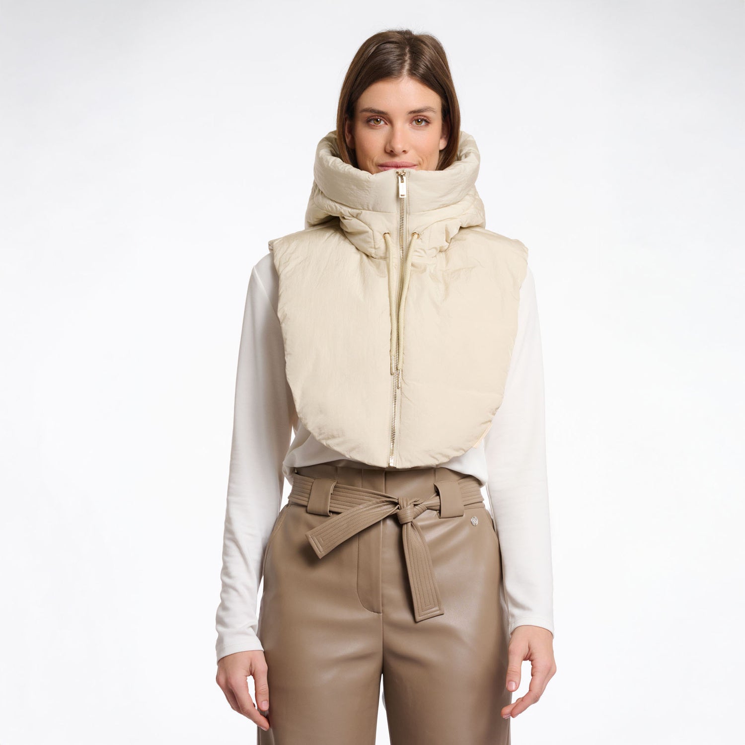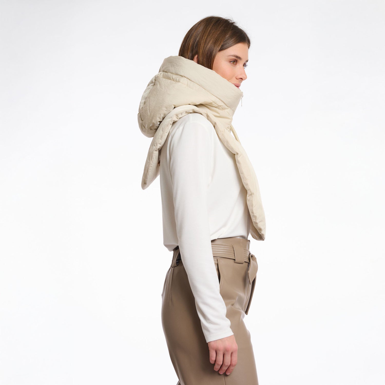 Elevate your look with this versatile hooded collar — your new favourite accessory. It combines the warmth of a scarf with the practicality of a hood, designed to layer effortlessly under a classic flat-collar coat. A must-have trend this season.