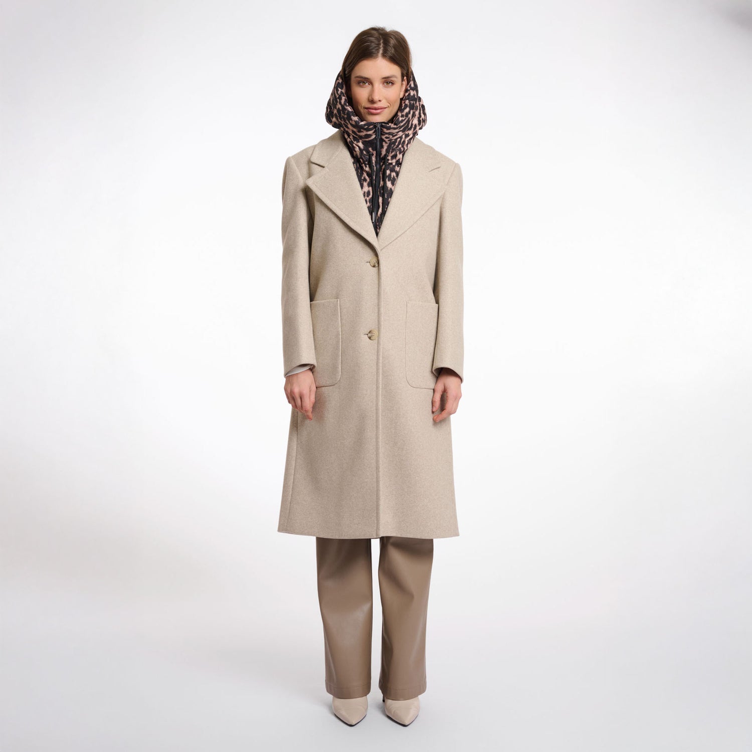 Elevate your look with this versatile hooded collar — your new favourite accessory. It combines the warmth of a scarf with the practicality of a hood, designed to layer effortlessly under a classic flat-collar coat. A must-have trend this season.