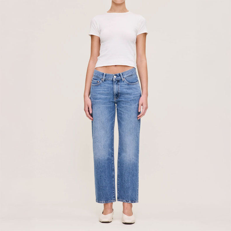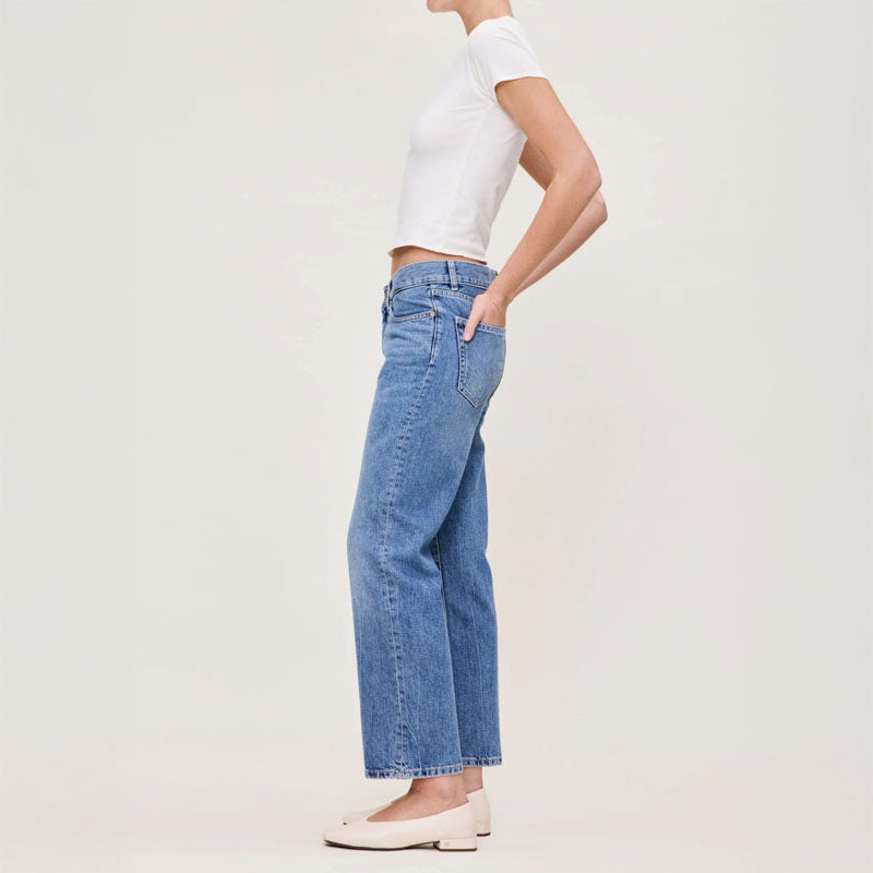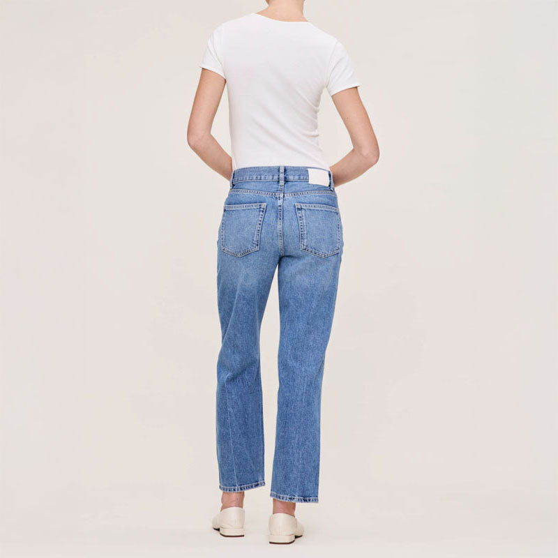 Romie is your go-to straight-fit jean with a mid-rise and a sleek leg, giving off that well-loved, thrifted vibe. With a 28" inseam and made from certified cotton, botanic fibers, and waterless technology, these 90s-inspired jeans are not just stylish but eco-friendly. They're the perfect addition to your wardrobe, blending nostalgia with sustainability for a timeless look.