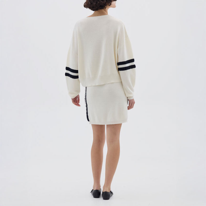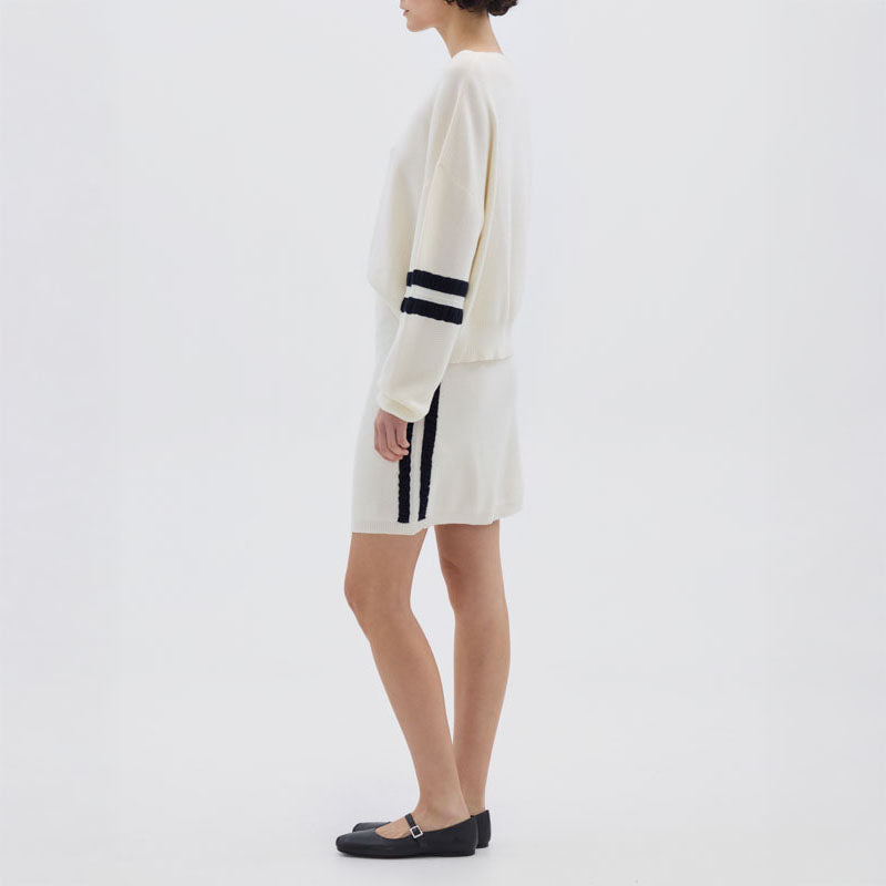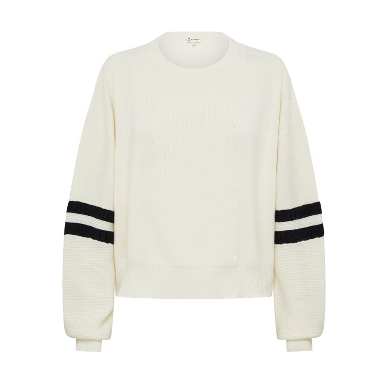 IRIS & WOOL Ruched Striped Rib Sweater in Cream