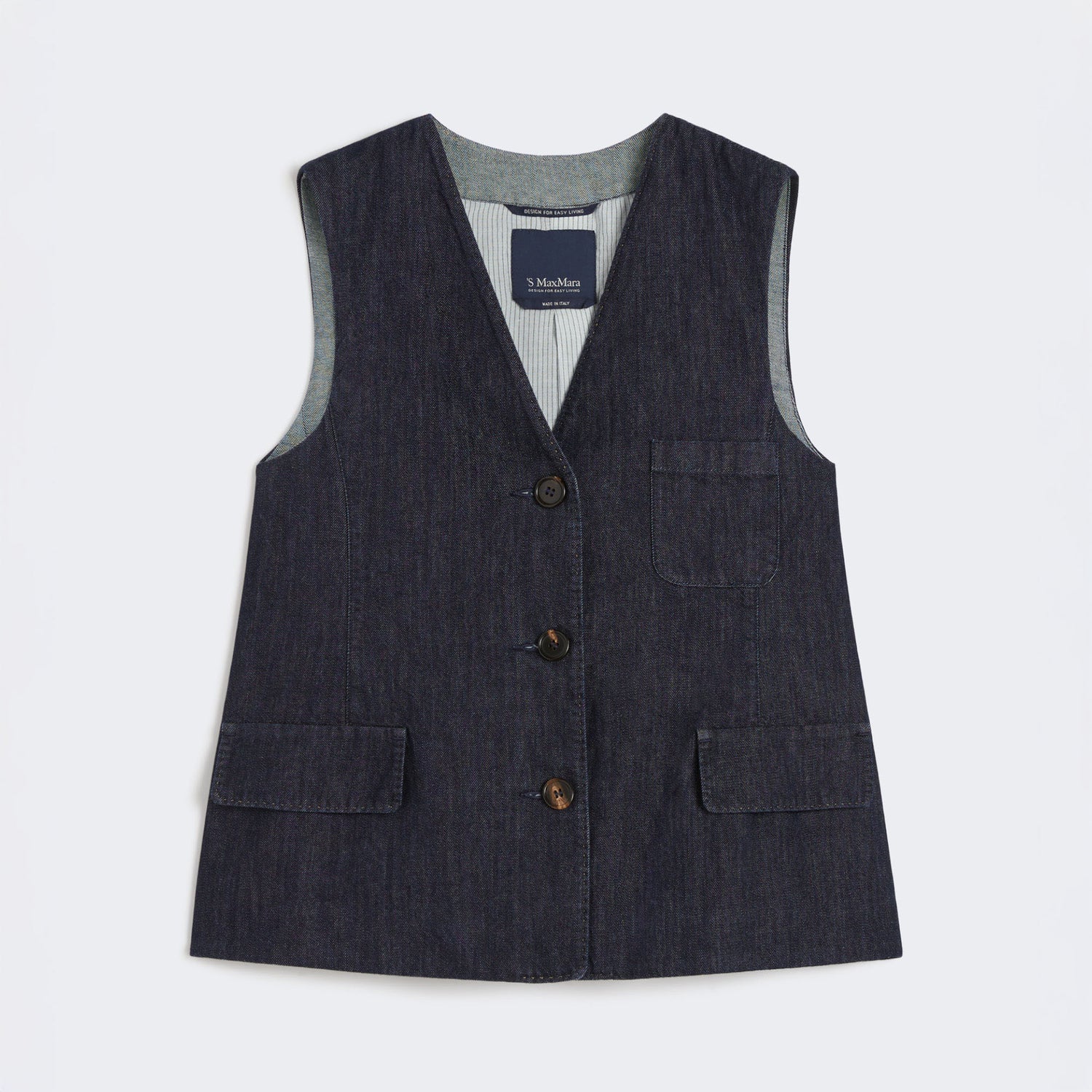 S MAX MARA Cinzia Single-Breasted Denim Gilet in Ultramarine