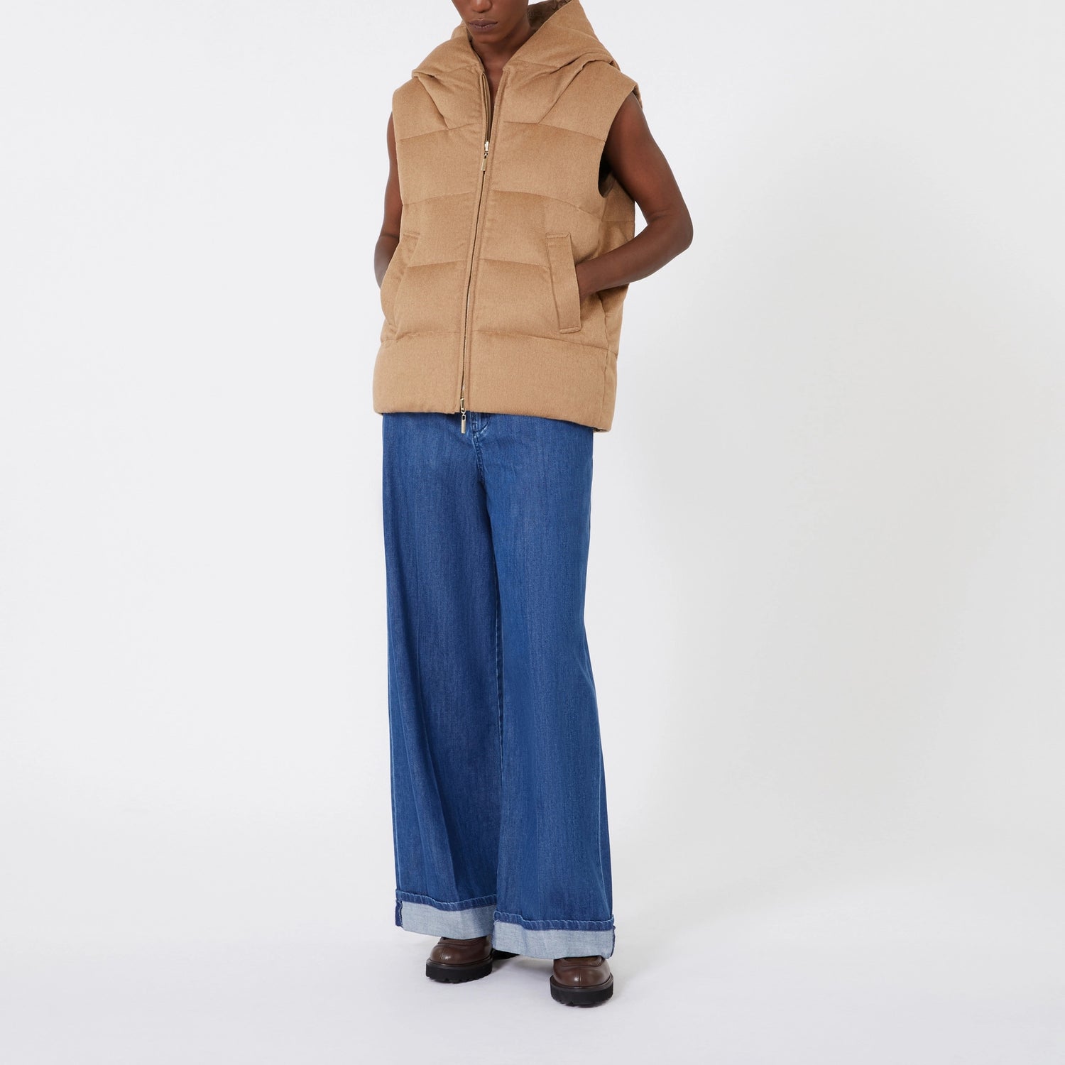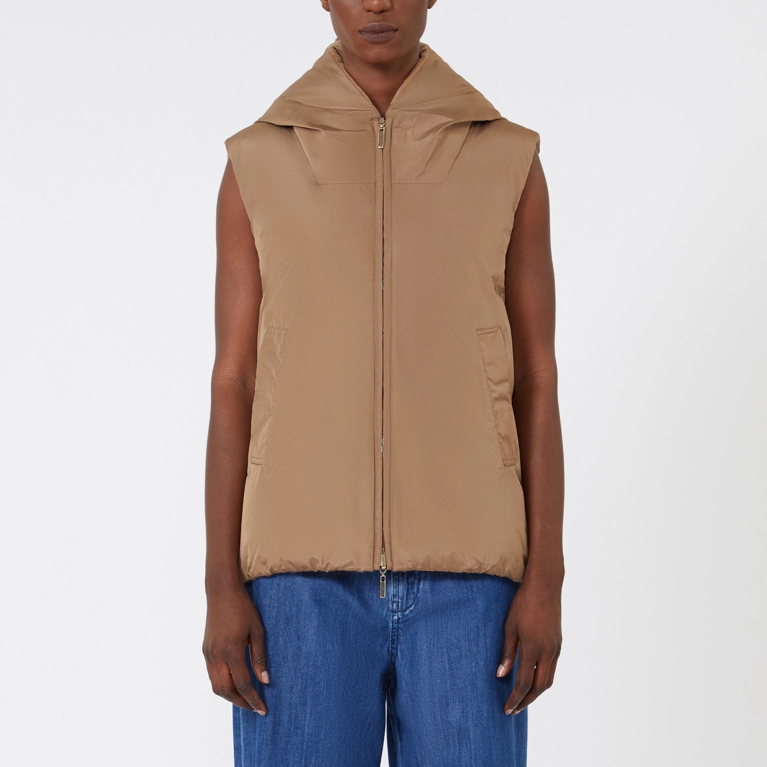 S MAX MARA Delfy Sleeveless Puffer Jacket in Camel