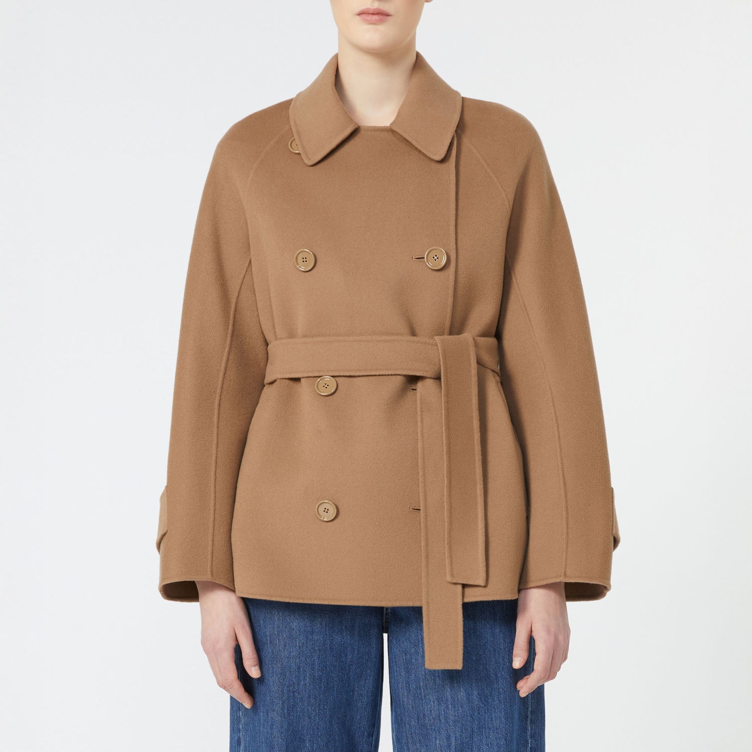 S MAX MARA Louis Short Double-Faced Wool Trench Coat in Camel