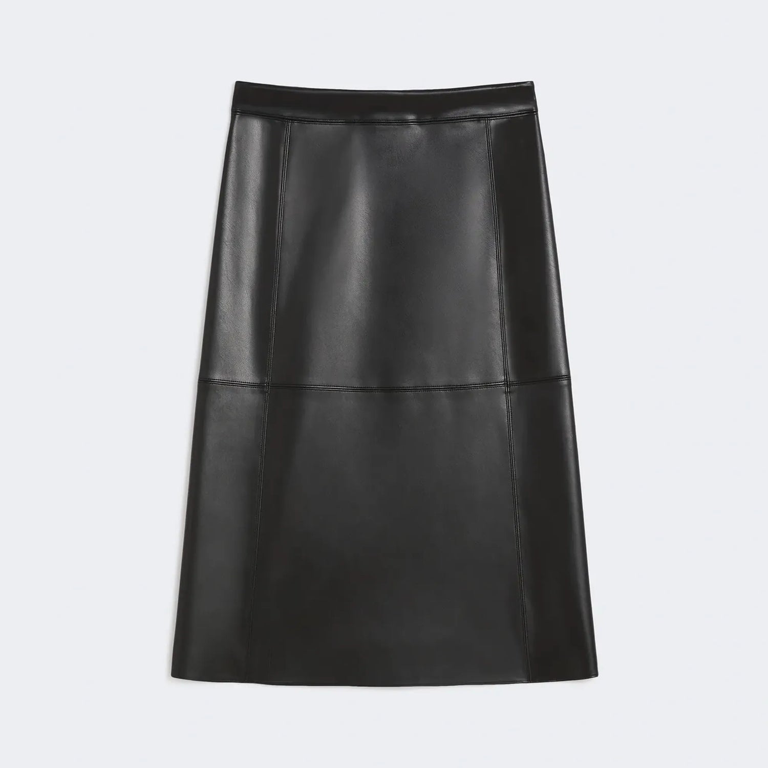 This midi skirt is crafted from a soft coated fabric, offering a sleek, leather-inspired finish. Designed with leather goods-style darts and topstitching, it highlights refined craftsmanship and a structured silhouette.