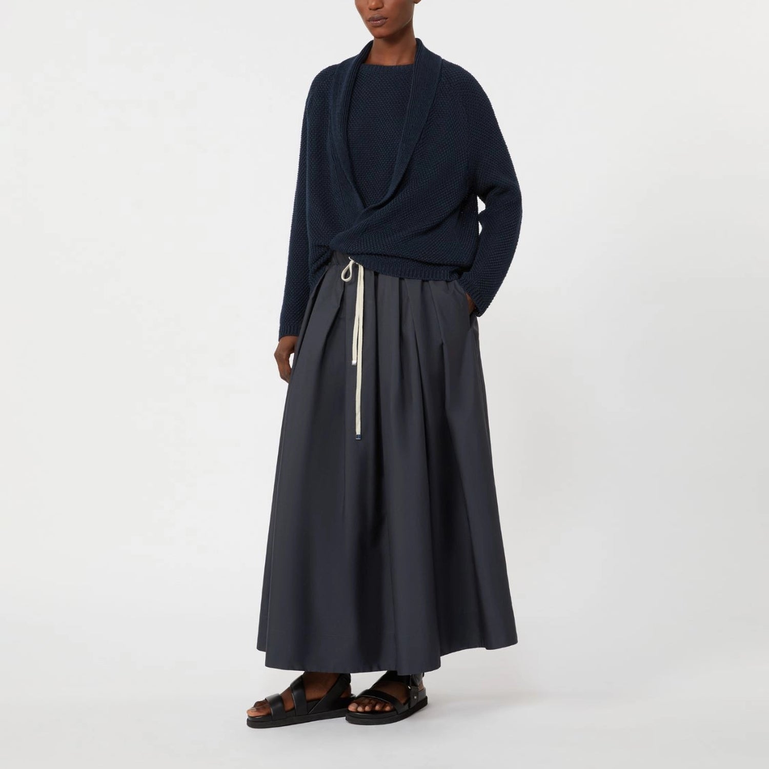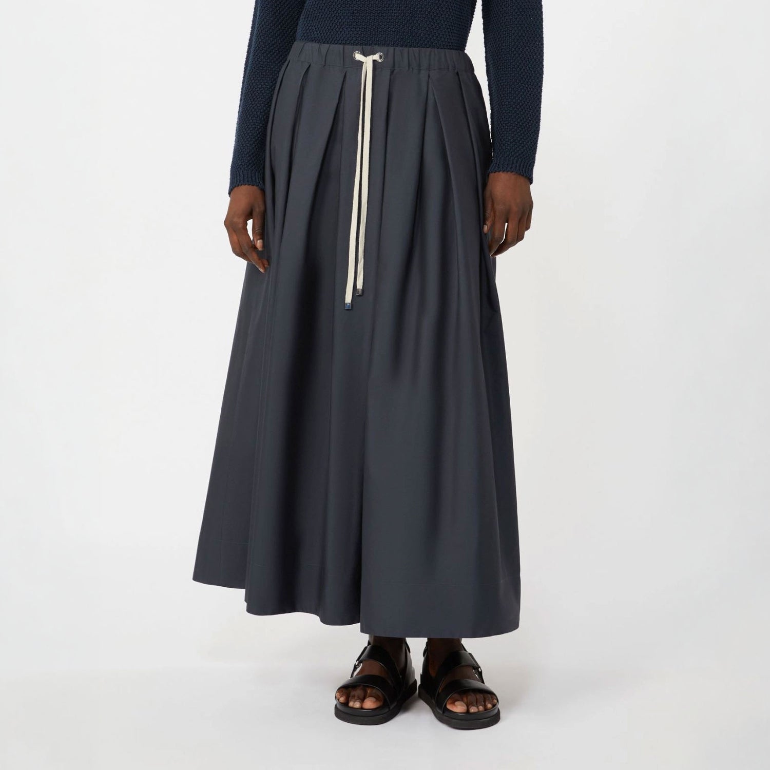 Effortless movement meets timeless style in this long A-line skirt crafted from pure cotton poplin. Designed with full volume and a flared hem, it creates a flowing, graceful silhouette that’s perfect for both casual and elevated looks.