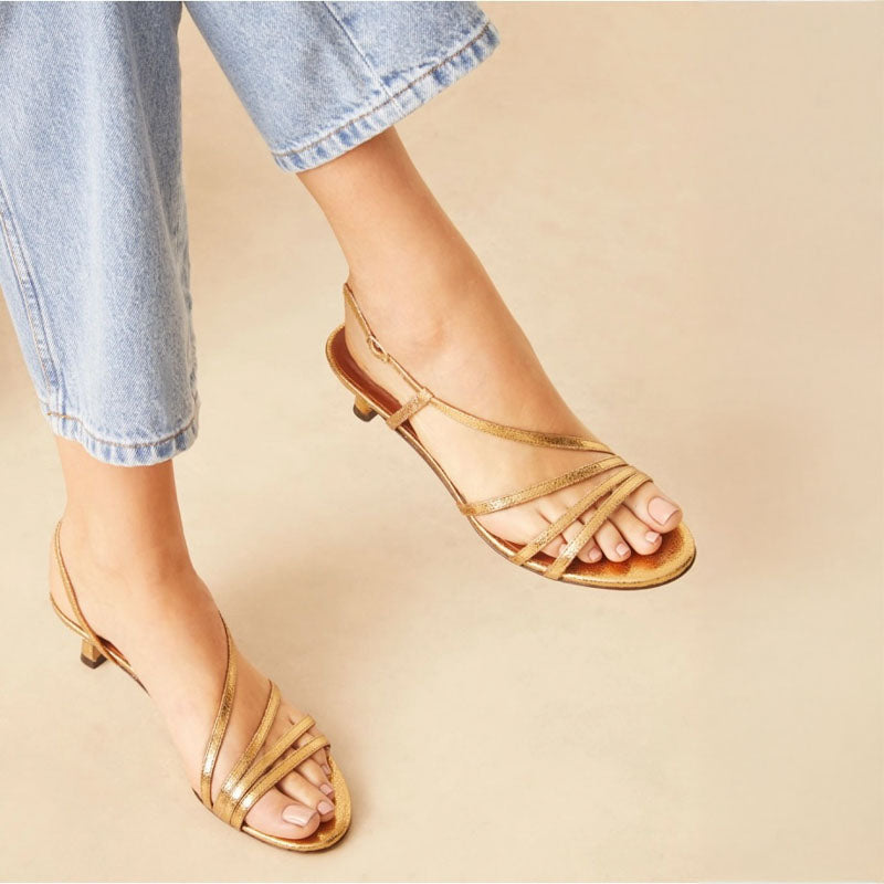 RIVECOUR Sandal 464 Strap Kitten Heel in Gold