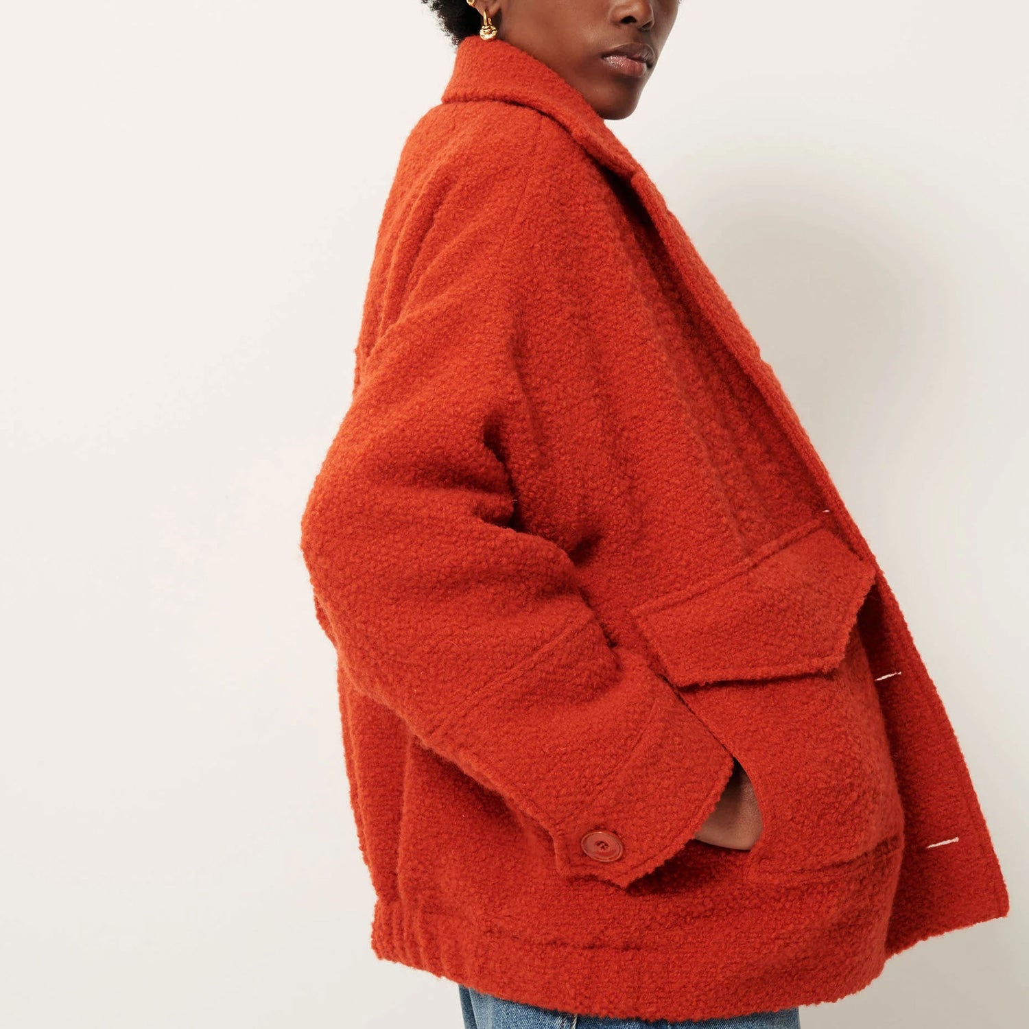 A bold and beautifully crafted outerwear piece, the Morrison Short Coat by SESSÙN brings warmth, texture, and statement colour to your wardrobe. Cut in a relaxed, cropped silhouette, this vibrant coat features large patch pockets, a softly structured shape, and an elasticated back for a flattering fit.