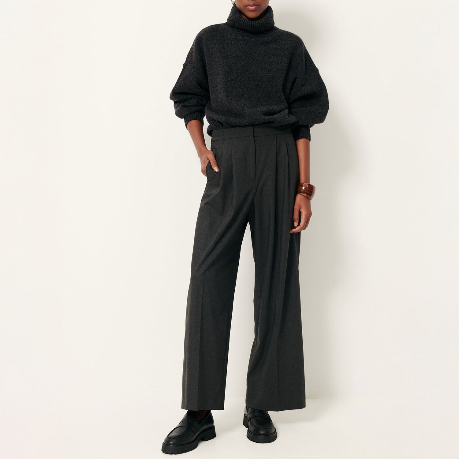 Turtleneck jumper knitted in wool and cashmere with side slits.