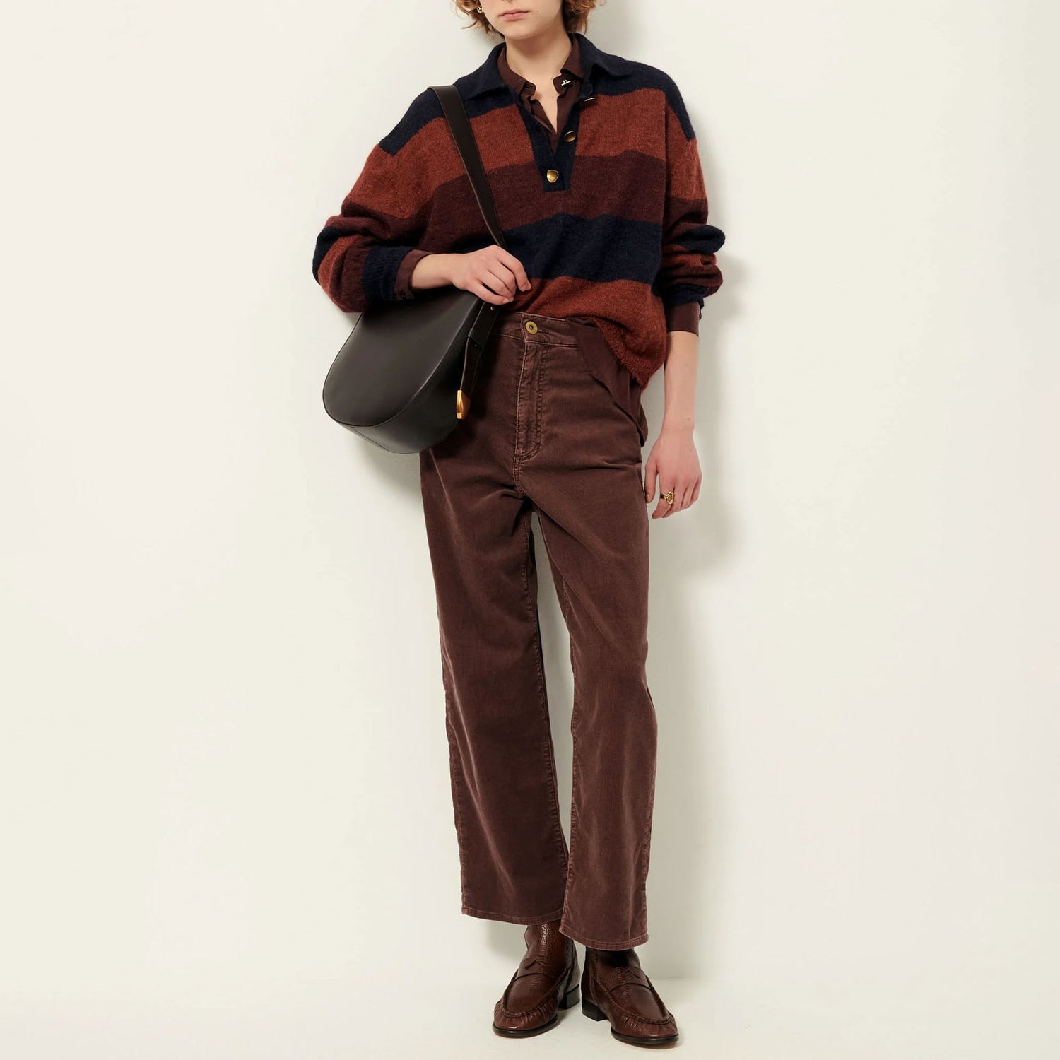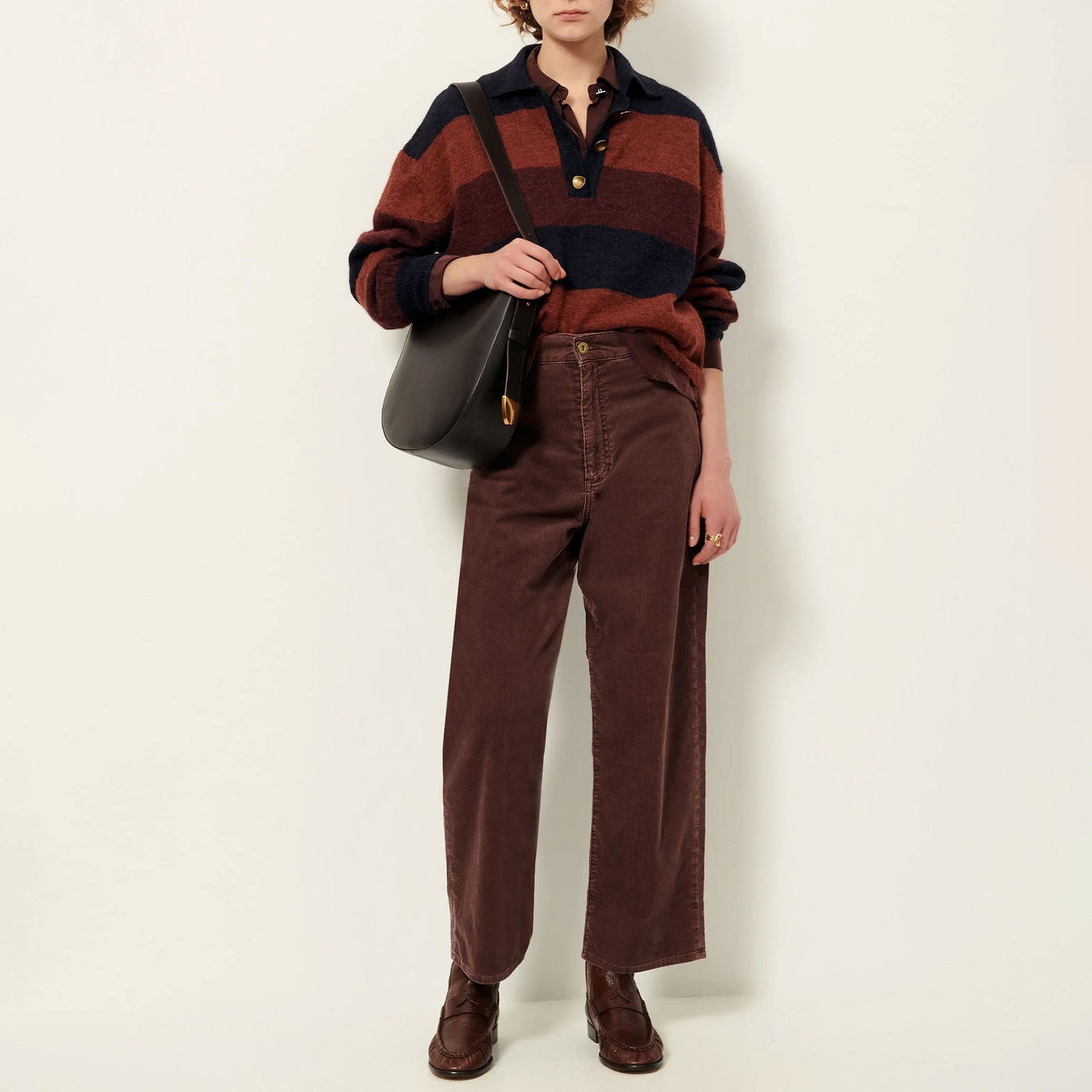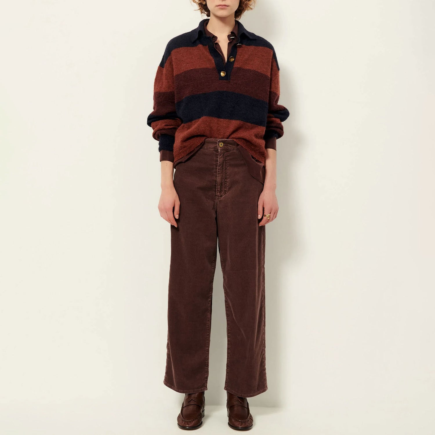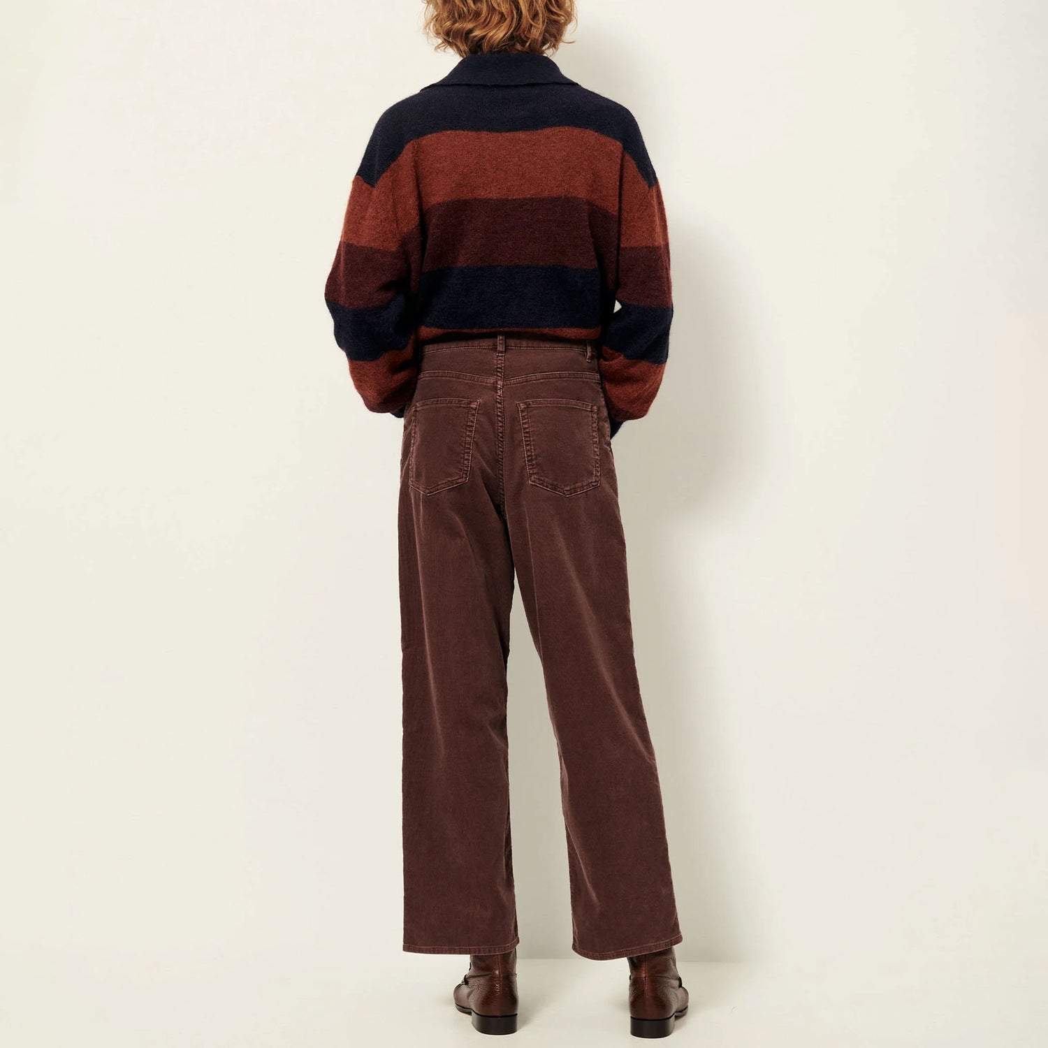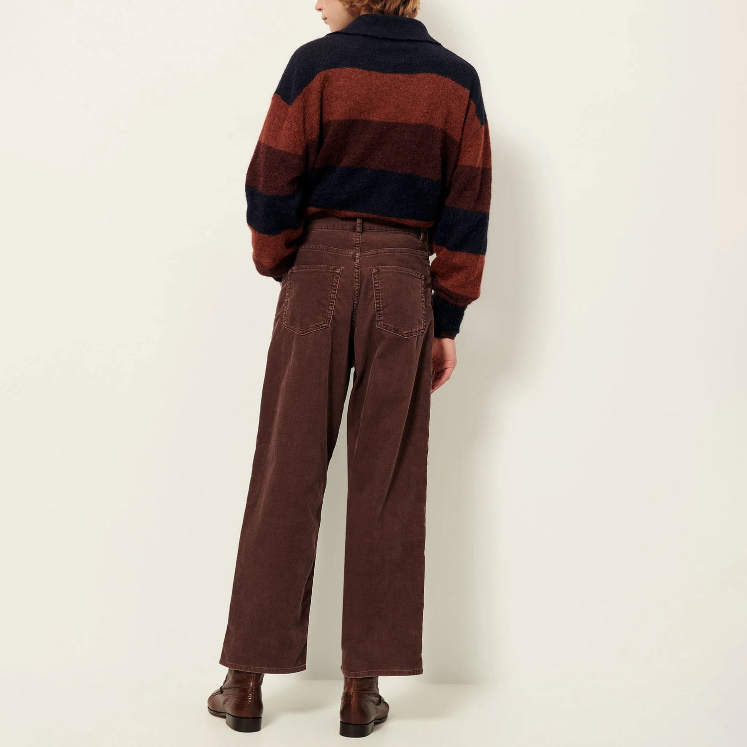 Straight-leg trouser with 5 pockets, in pigment-dyed pincord, woven in France.
