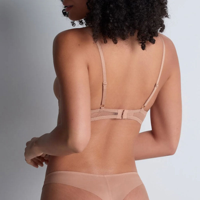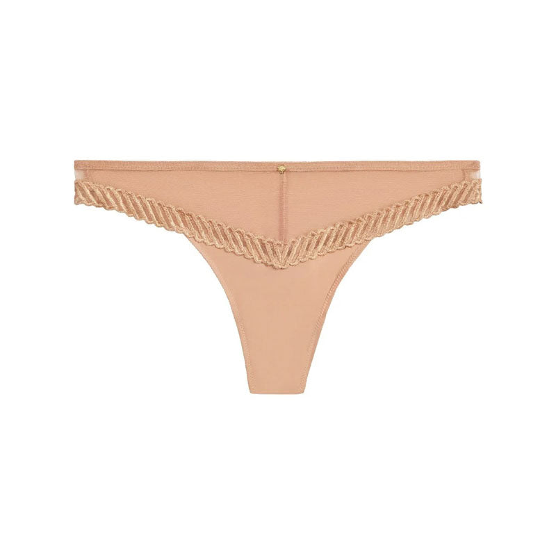 The sexy Sheer Emotion tanga brief features a very seductive see-through tulle inset at the front, accentuated by contemporary, eye-catching embroidery and a gold charm that glistens at the waist. The back is made entirely from soft, comfortable fabric for zero VPL.