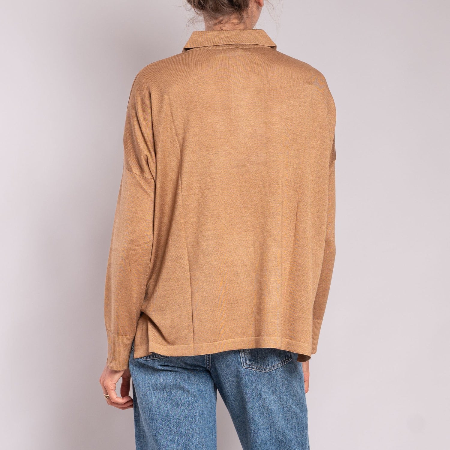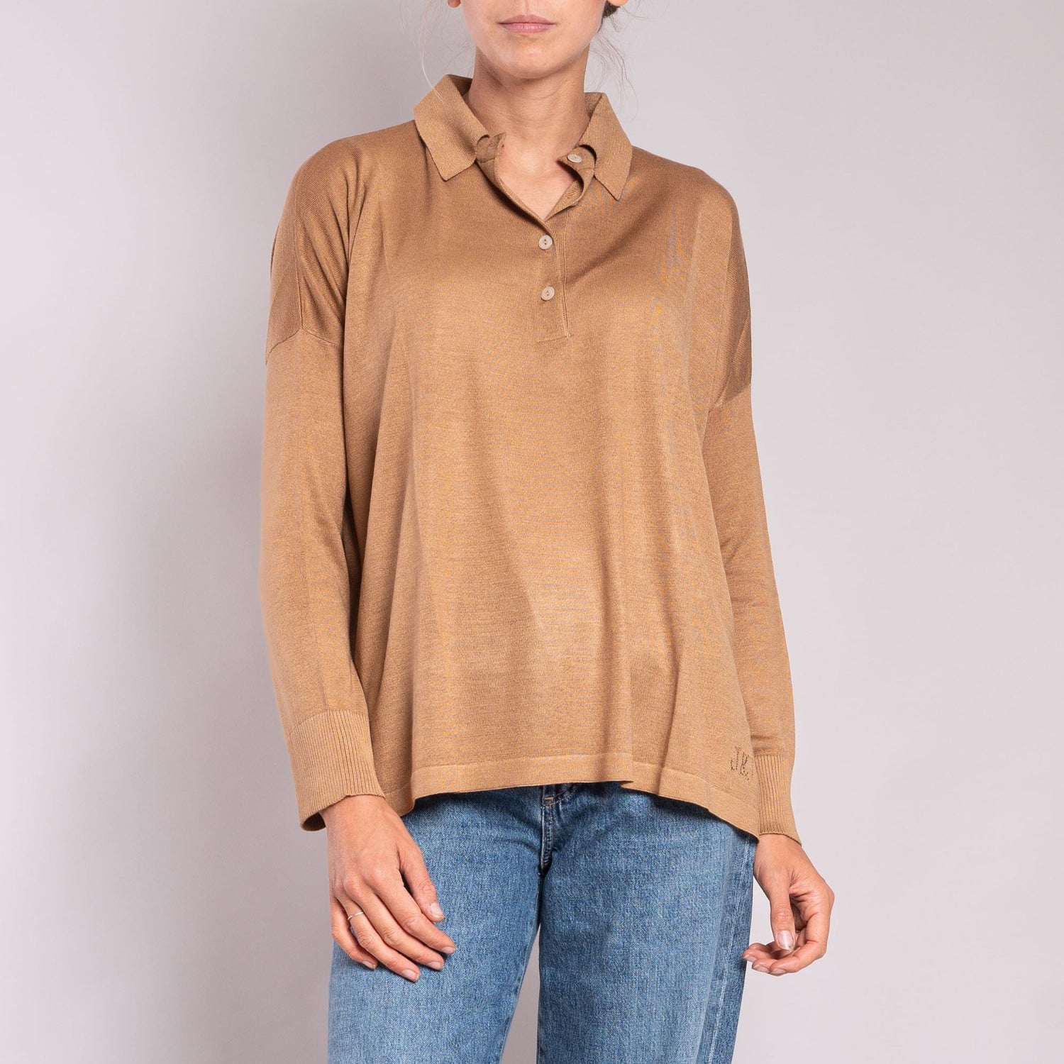 JEAN & TEMPLE Silk & Cashmere Shirt in Caramel