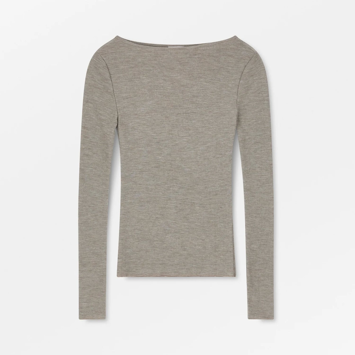 Designed with a wide boat neckline and long, slim sleeves, it features delicate baby lock stitching along the seams for a refined finish. With its slim cut that gently hugs the figure, this piece runs slightly small - so we recommend sizing up for the perfect fit.