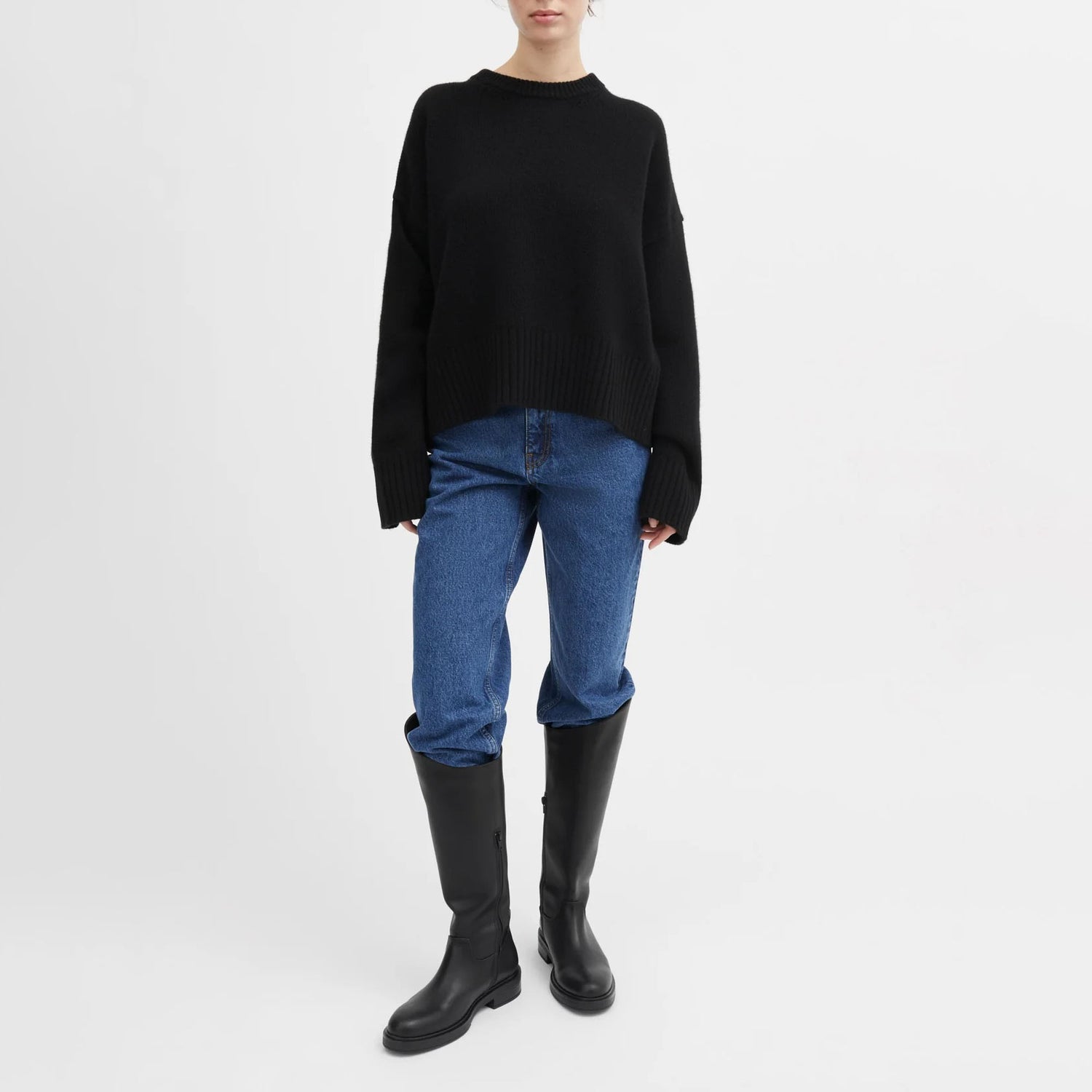 The Campa Jumper is an oversized knit crafted from premium merino wool. It features a classic round neckline, dropped shoulders, and ribbed detailing at the hem. With its boxy, cropped silhouette, this jumper offers a relaxed yet elevated look.