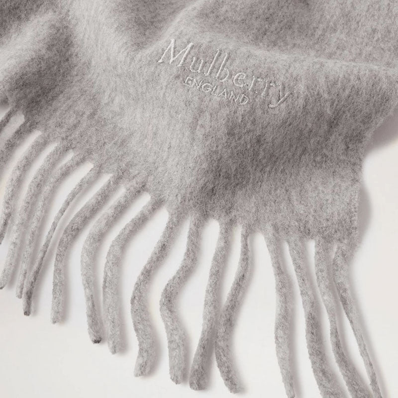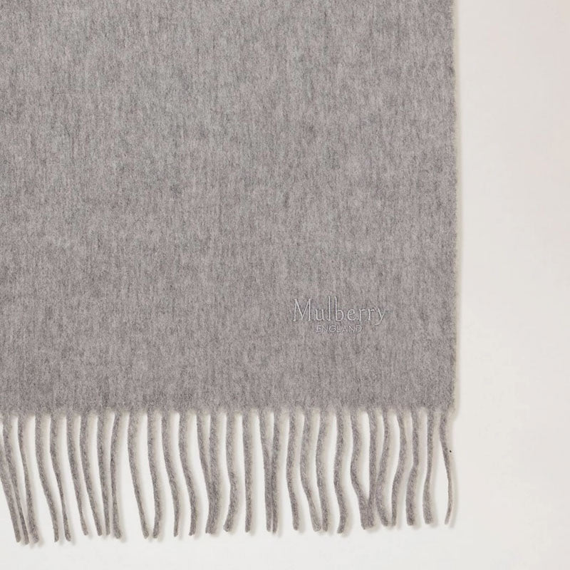 MULBERRY Small Solid Merino Wool Scarf in Light Grey Melange Merino Wool