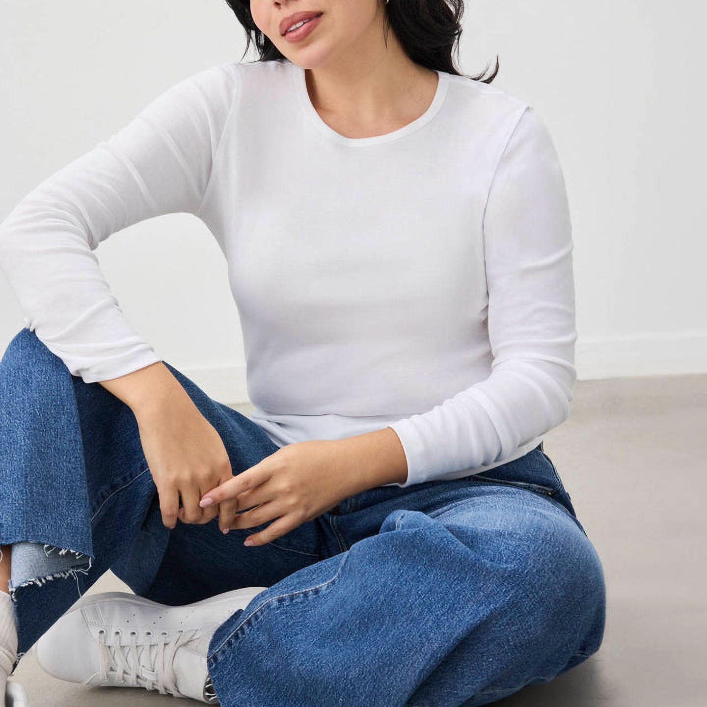 Soft, stretchy, and perfectly fitted, this classic crew neck long sleeve is made from our finely ribbed Classic Layering Knit. It moves with you, keeps its shape, and layers effortlessly—perfect for winter and beyond.