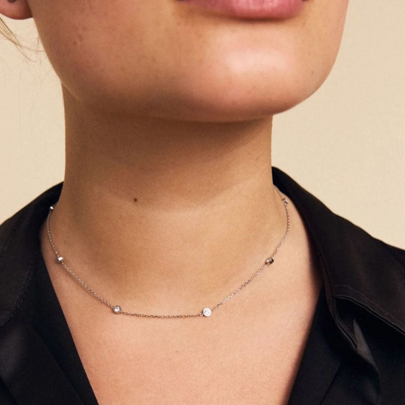 Stella Mini is an Edblad classic – a delicate and elegant collection that can be worn daily. The necklace features six small, individually set clear stones with a narrow border around each. All of the stones are attached at intervals to a bevelled anchor chain.