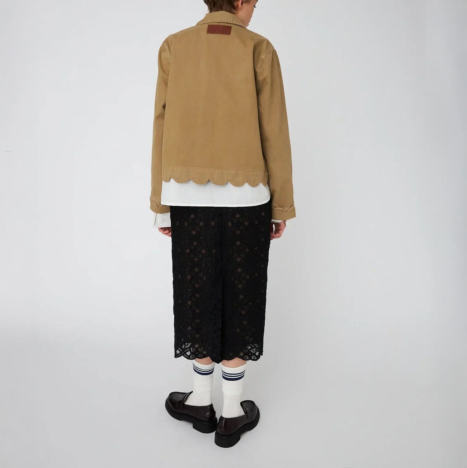 A utility classic with a playful twist. This structured canvas shirt features a button-down front, oversized patch pockets, and charming scalloped edges at the cuffs and hem. Finished with a signature STELLA NOVA logo patch at the back for that extra bit of cool!