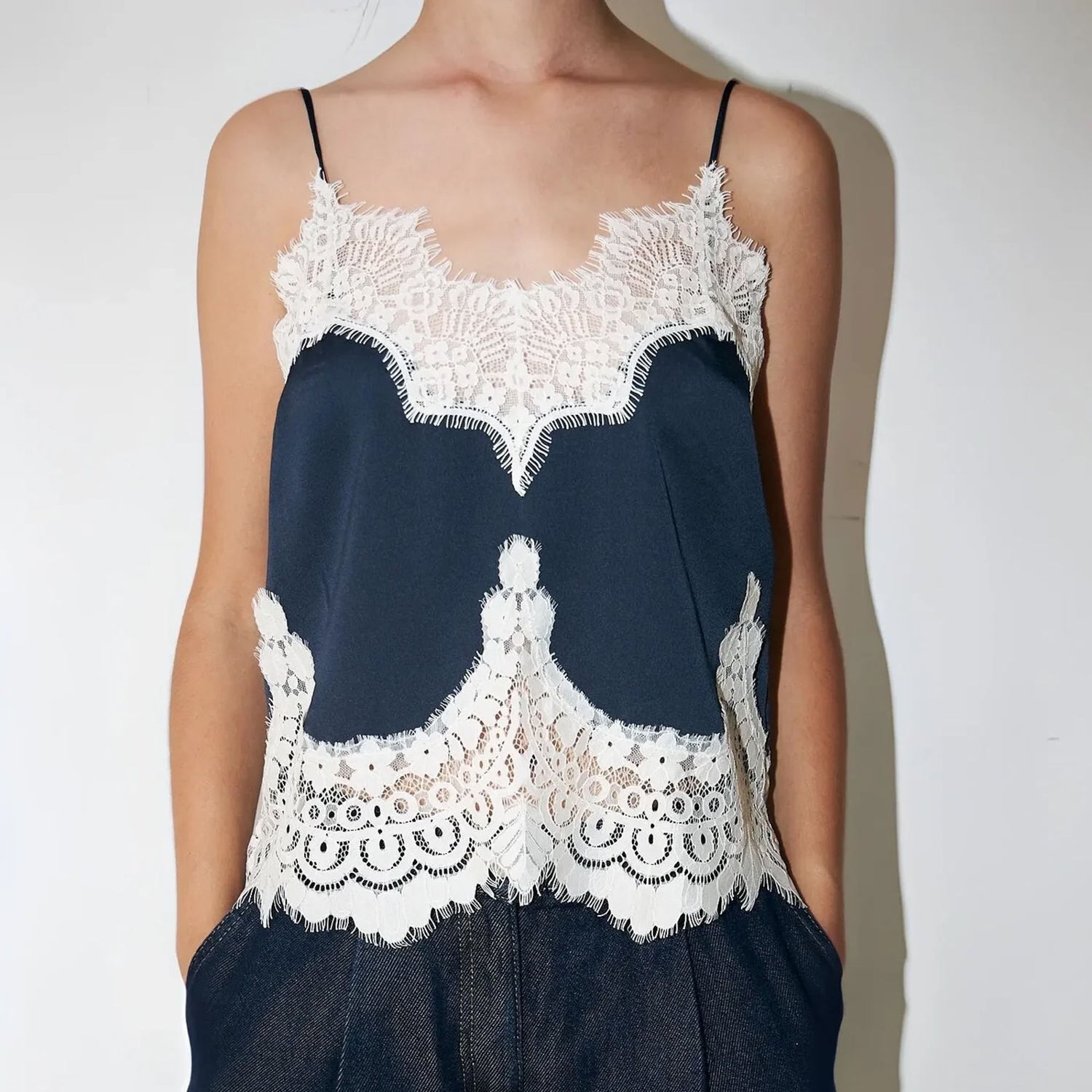 Light, elegant, and endlessly versatile. This delicate cami features adjustable straps and soft lace detailing at the neckline and hem. Crafted from a smooth, lightweight fabric, it’s the perfect layering piece to elevate your look – day or night, all year round.
