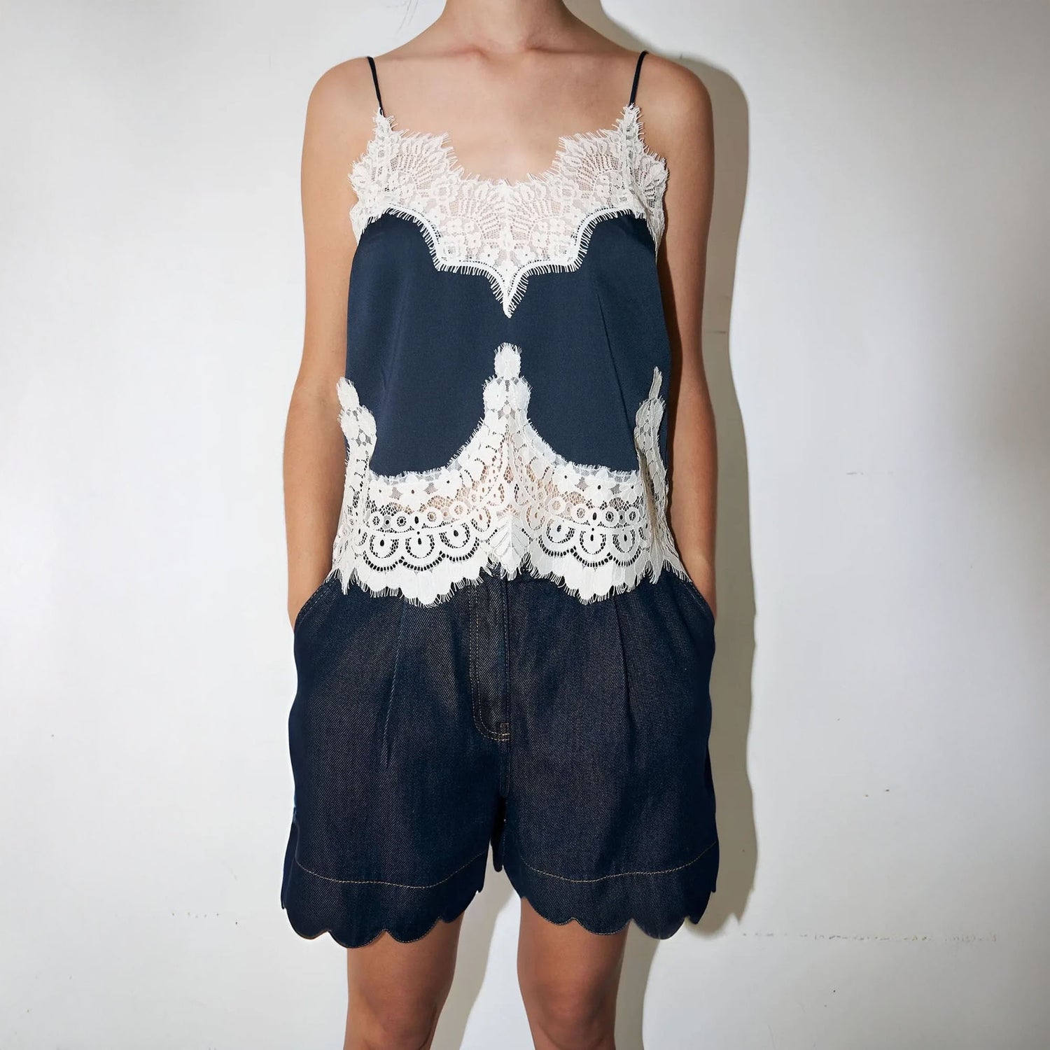 STELLA NOVA Delicate Lace Top in Navy/Creme
