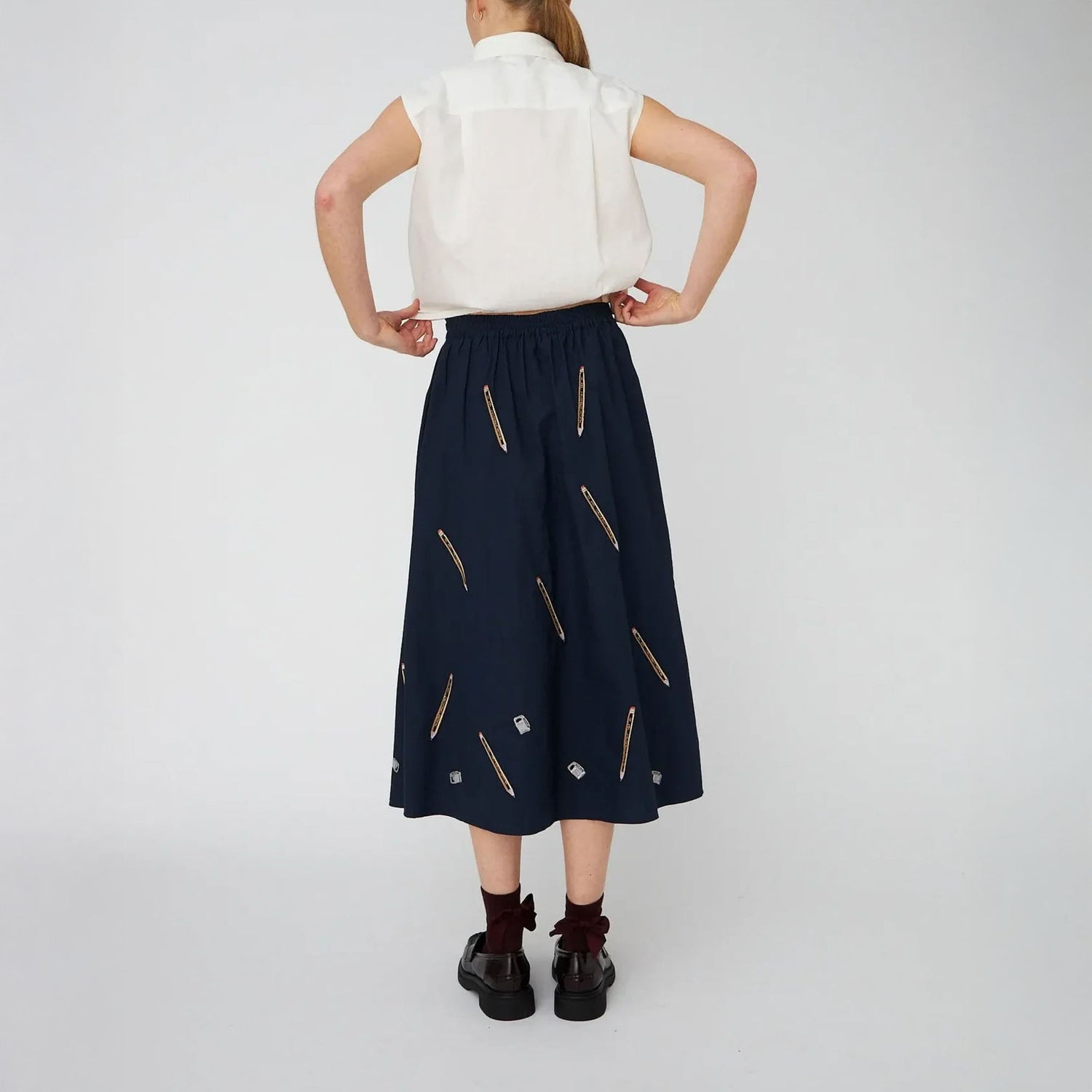 STELLA NOVA Embroidered Midi Skirt in Navy