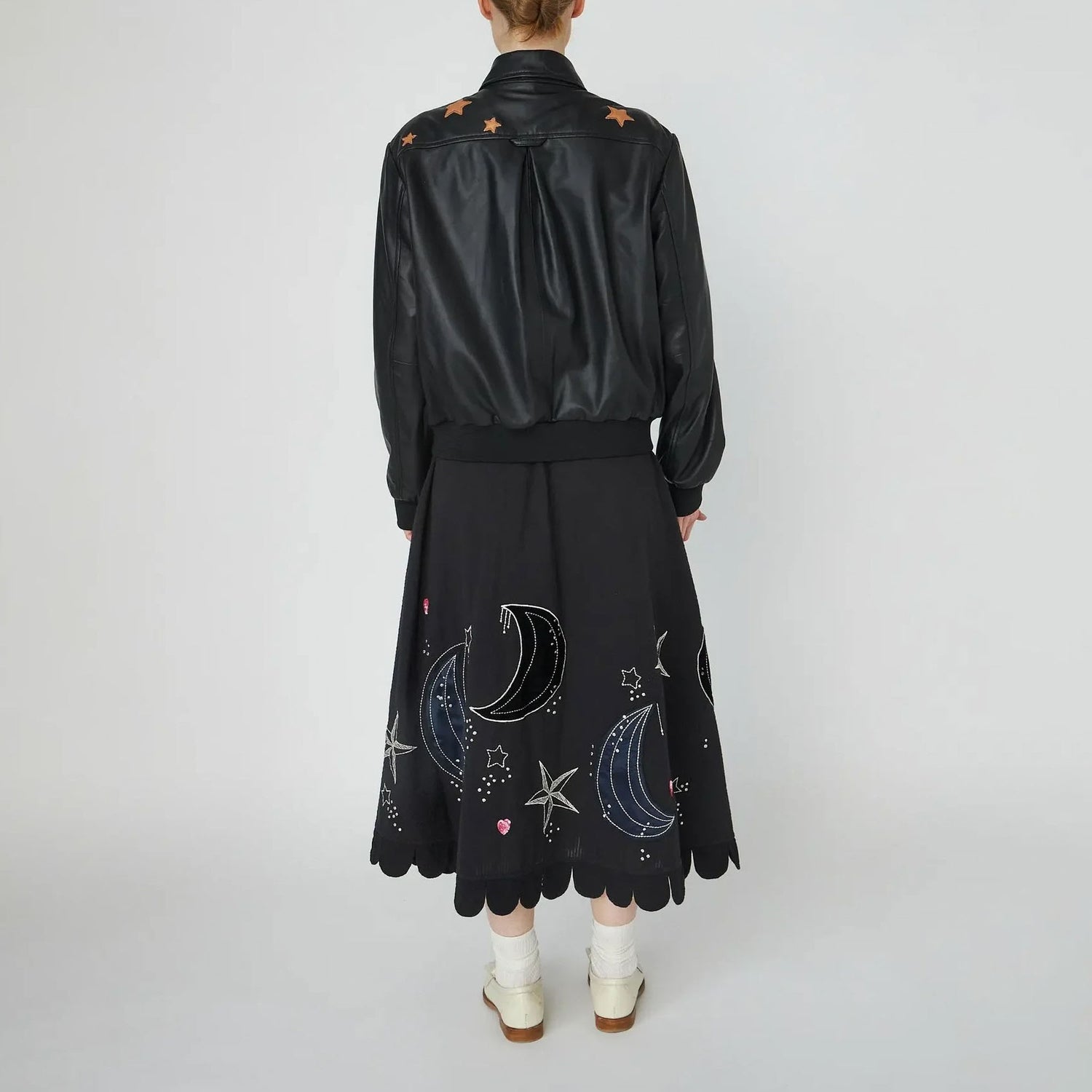 STELLA NOVA Starlight Leather Bomber Jacket in Black