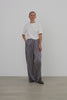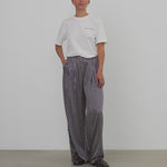STELLA NOVA Striped Silk Mid Waist Pants in Creme Blue Stripes