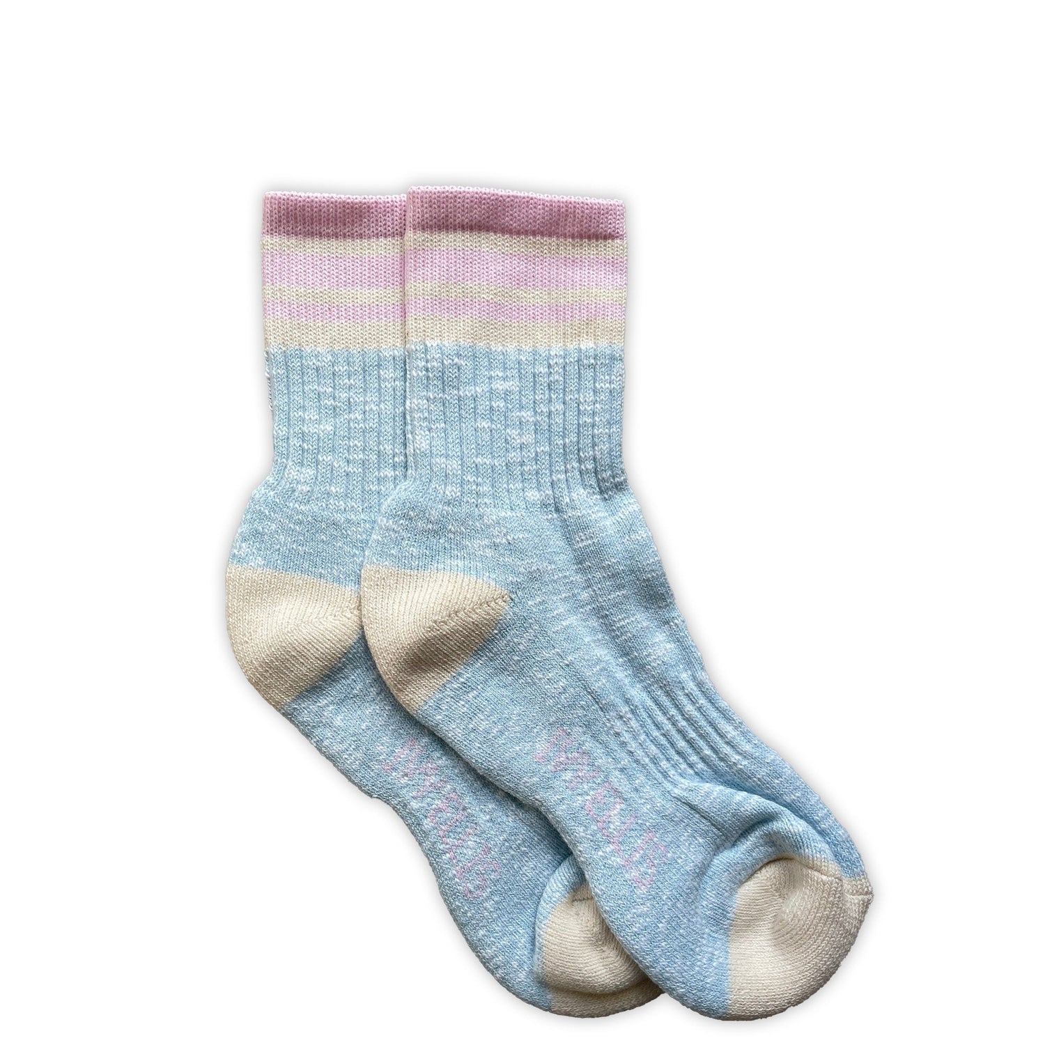 IVY ELLIS Ladies Big Sand Cotton Slub Socks in Baby Blue/Pink
