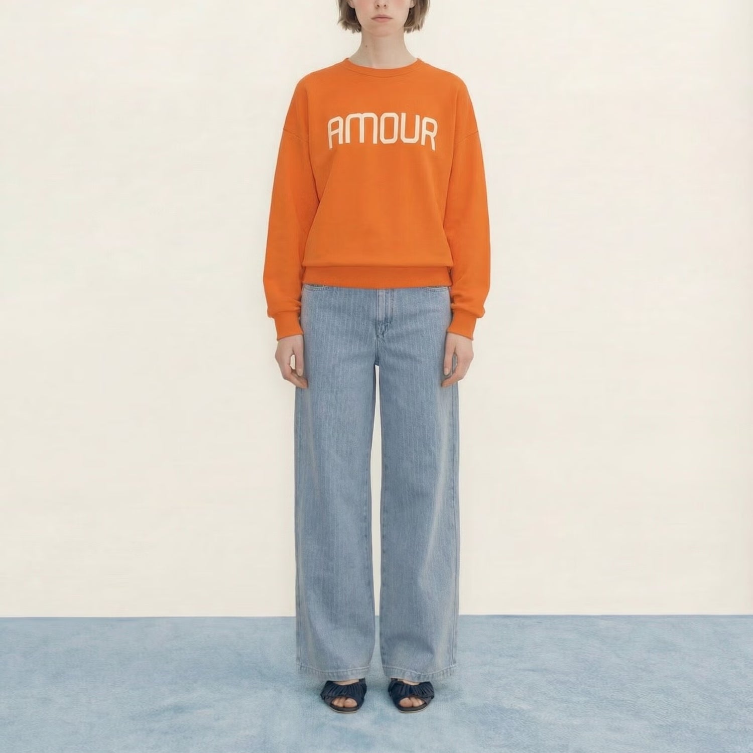 Wrap yourself in cosy comfort with the Amour Sweatshirt, crafted from sumptuous pure cotton French terry. This relaxed-fit essential features a charming "AMOUR" print across the chest, paired with effortlessly cool dropped shoulders and a snug ribbed neckline and hems. The vibrant summer-red hue brings instant warmth to any wardrobe.