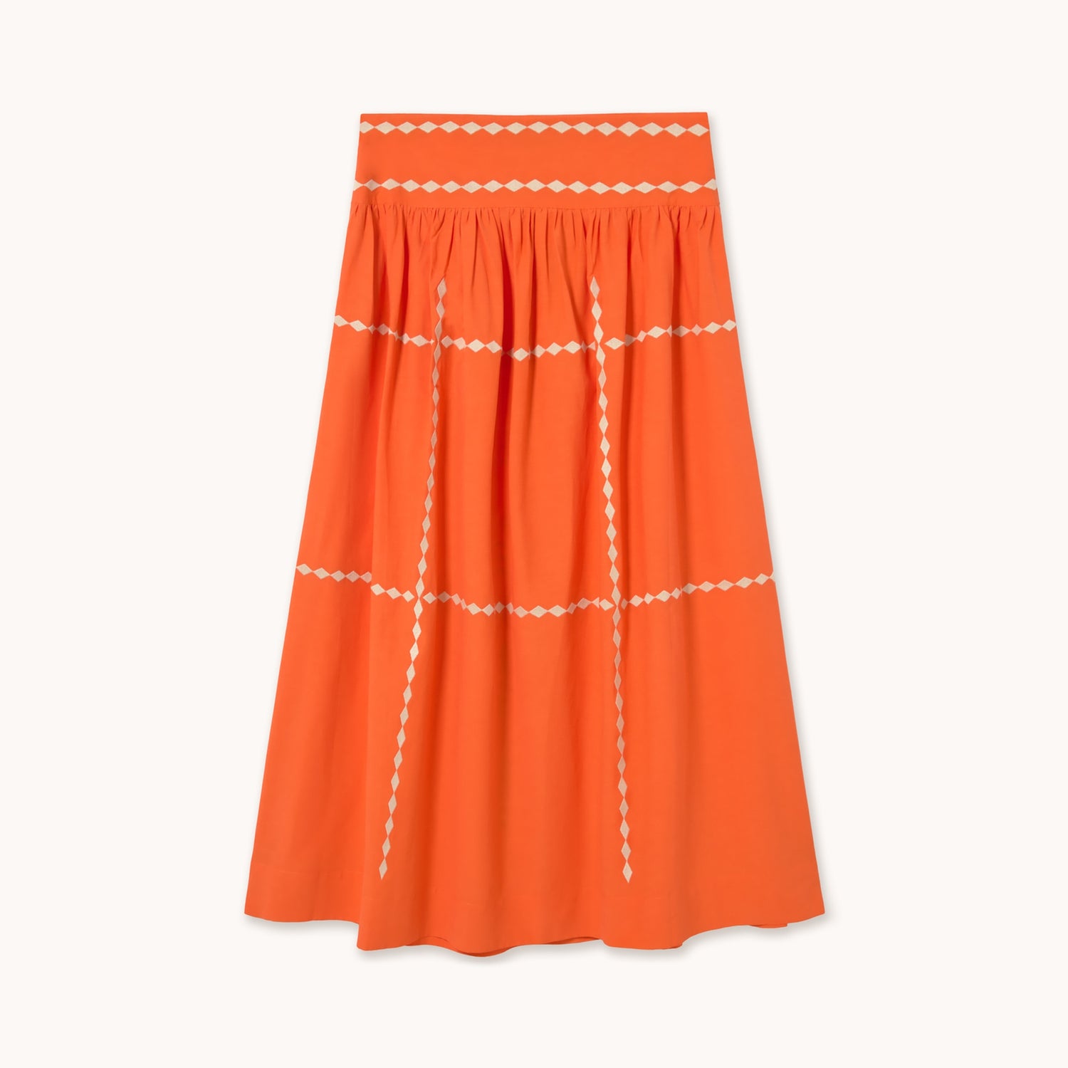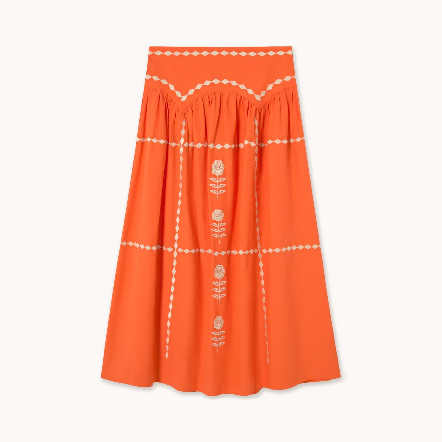 THE TINY BIG SISTER Embroidered Skirt in Orange