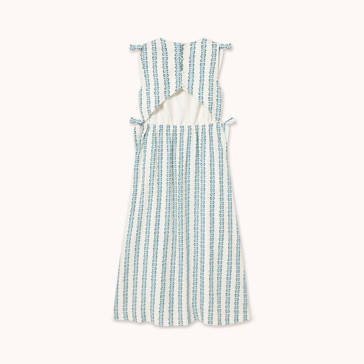 This Flowers Dress in Green is the perfect sunny-day companion. This lightweight frock features a cheeky open back and adorable bow-tie shoulder details that'll have heads turning. Whether you're chasing ice cream trucks or twirling in the garden, it's the ultimate summer essential that makes getting dressed feel like playtime.
