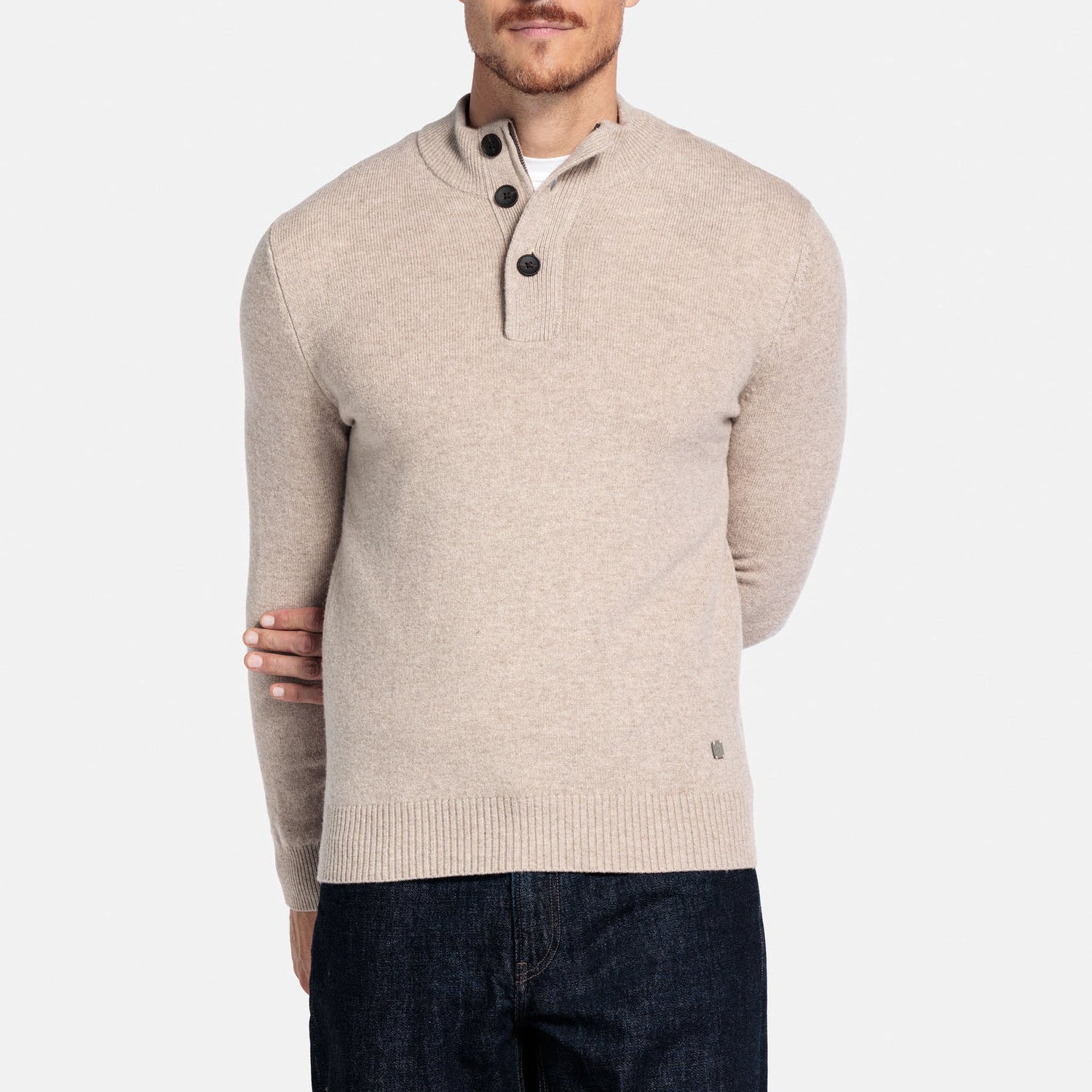 THOMAS MAINE 3 Button Lambswool Jumper in Light Brown