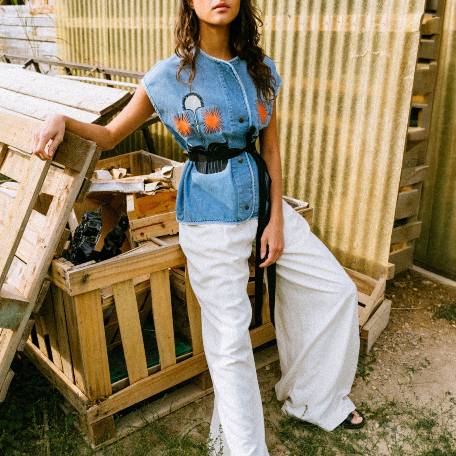 Made from high-quality denim with an authentic washed finish, this vest is brought to life by the contemporary brand Tinsels. Perfect for layering and elevating any casual outfit.