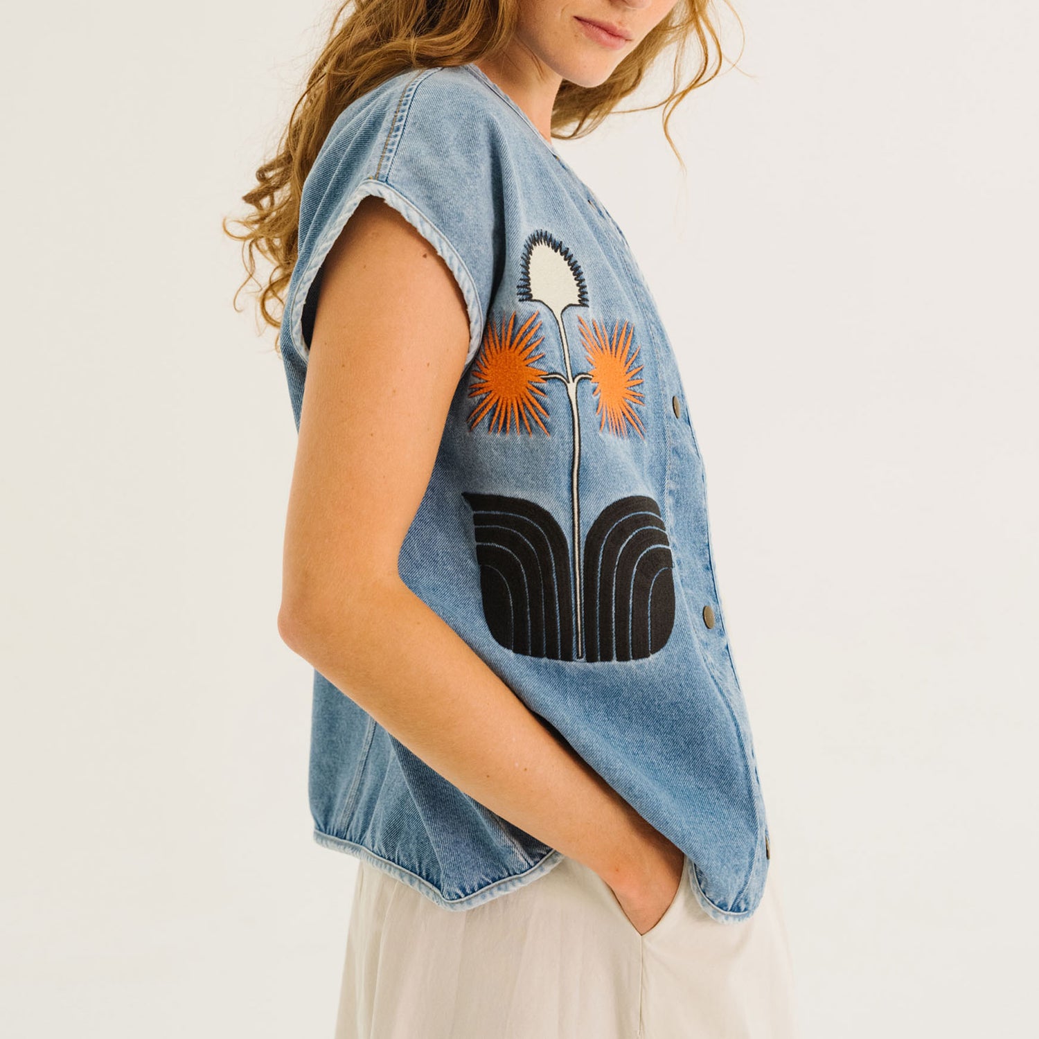 The front showcases intricate embroidery, crafted by a Lyonnais design studio, adding a unique, artisanal touch.