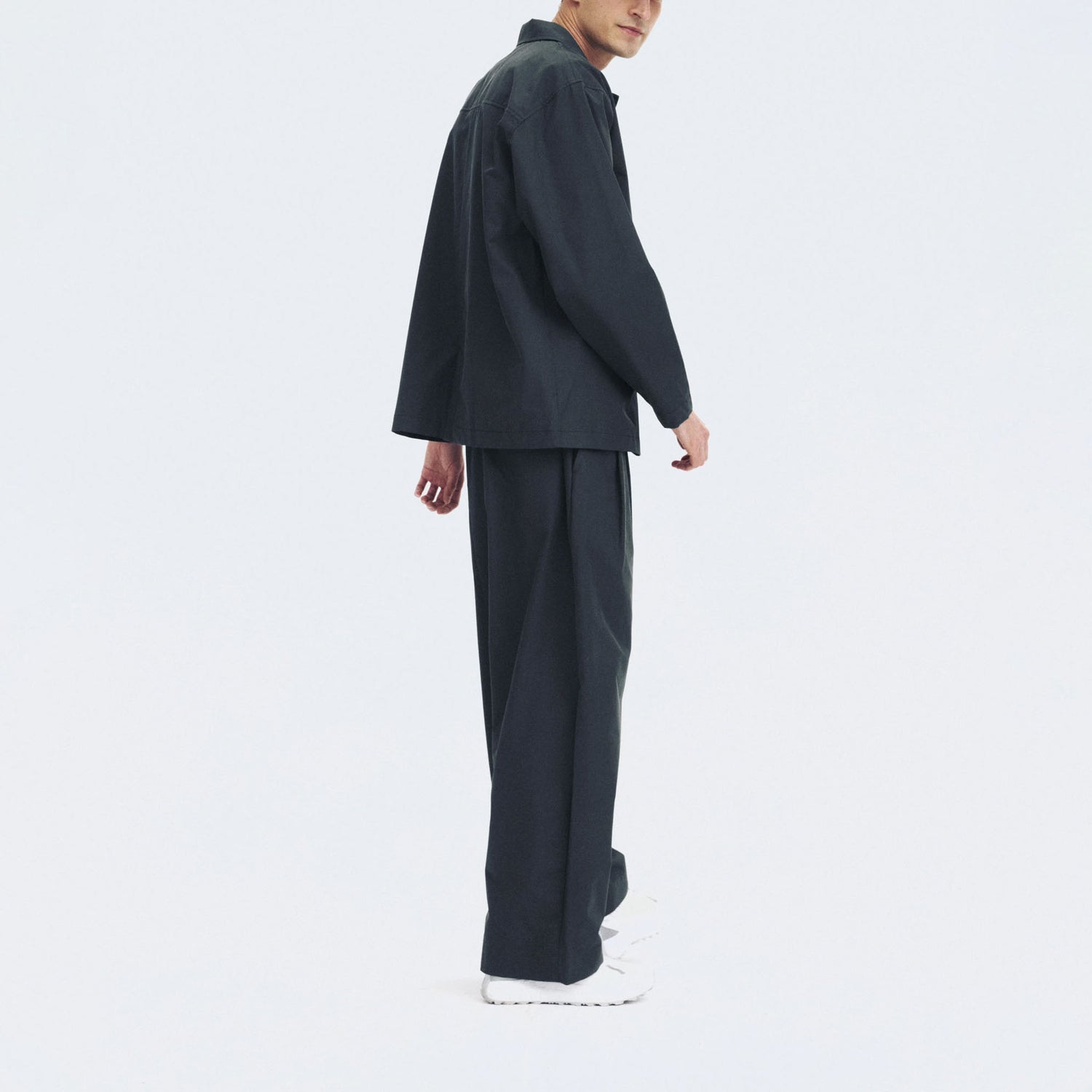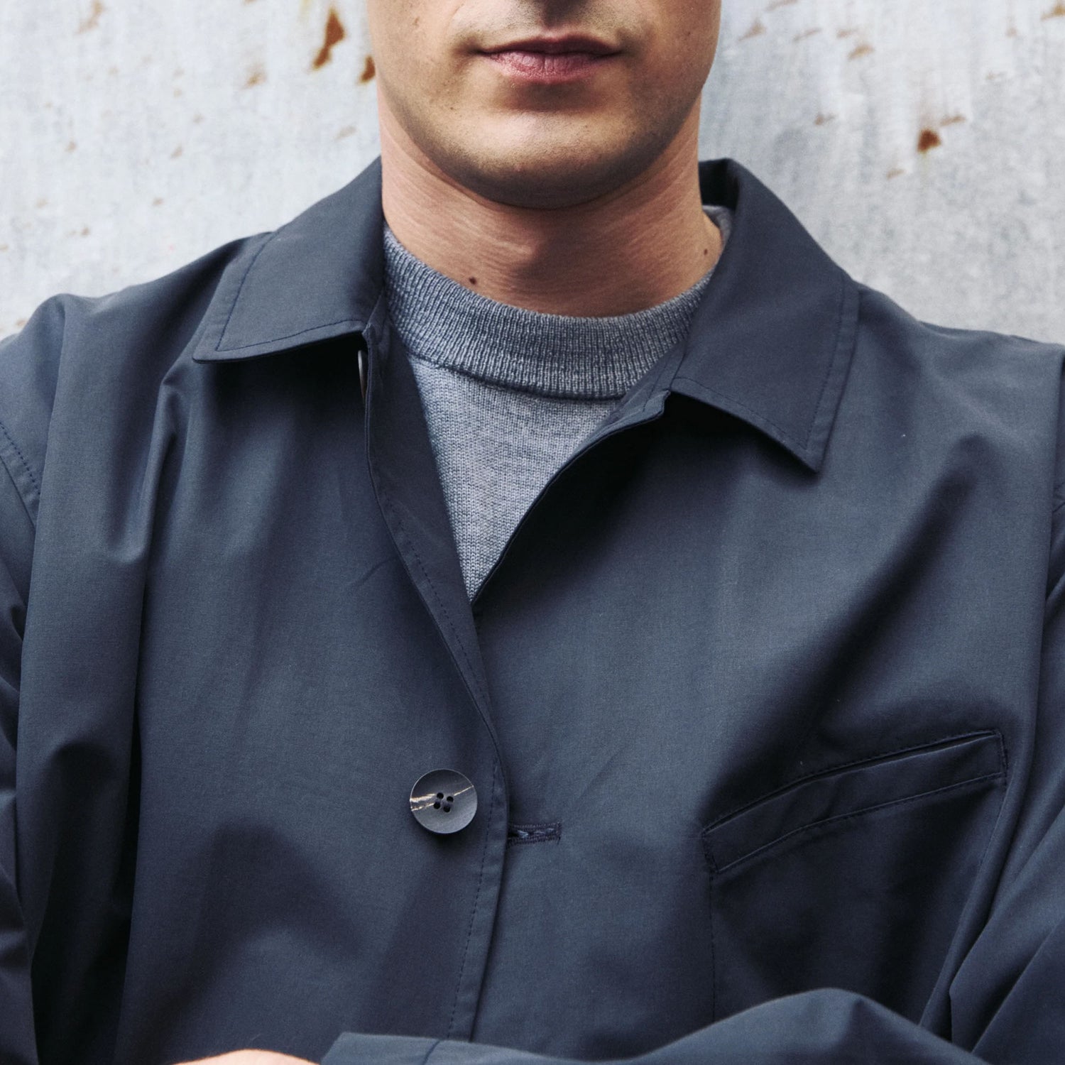 The Technical City Blazer is designed with a relaxed silhouette and sharp intent. Unlined and lightweight, it features clean finishing, hidden seams, and precise tailoring that keeps structure without the weight. The technical fabric is water-repellent and breathable, built to move with you through the day, no matter the season