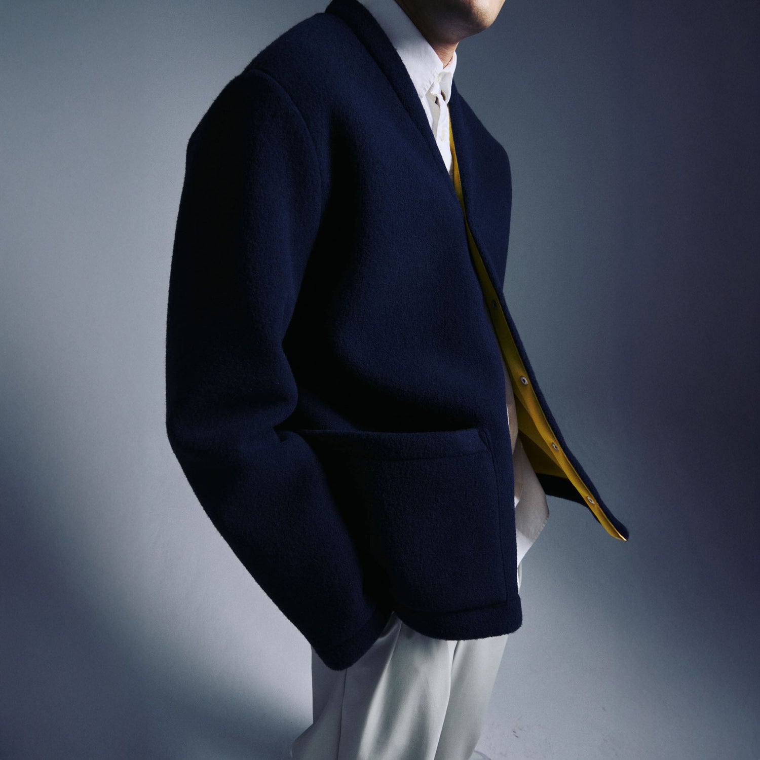 Where tradition meets modernity. We’ve combined the warmth and authenticity of virgin wool with a contemporary twist: a smooth neoprene lining. The result is a striking contrast that elevates any outfit. With straight, clean lines, snap buttons, and practical pockets, this piece is designed for everyday wear while making a statement
