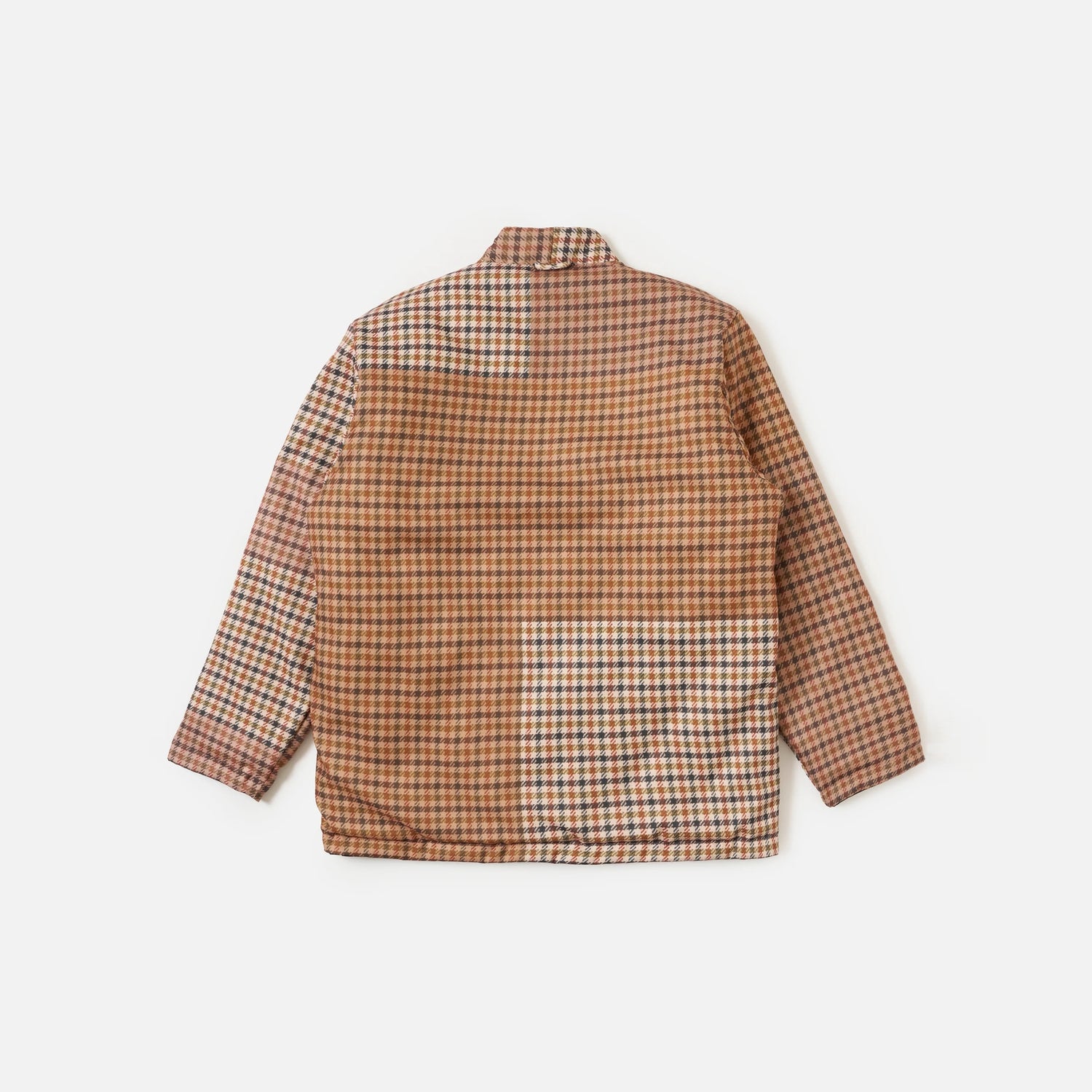 The reversible Kyoto Jacket, created in collaboration with Taion, is a quilted soft-shell style that blends functionality with statement design. One side features a faux patchwork tweed, inspired by the classic warm tweed coat. Designed in a regular fit, it includes a tie-front closure, patch hip pockets on both sides, a patch chest pocket on the plain side, and a collaborative branded patch for a distinctive finish