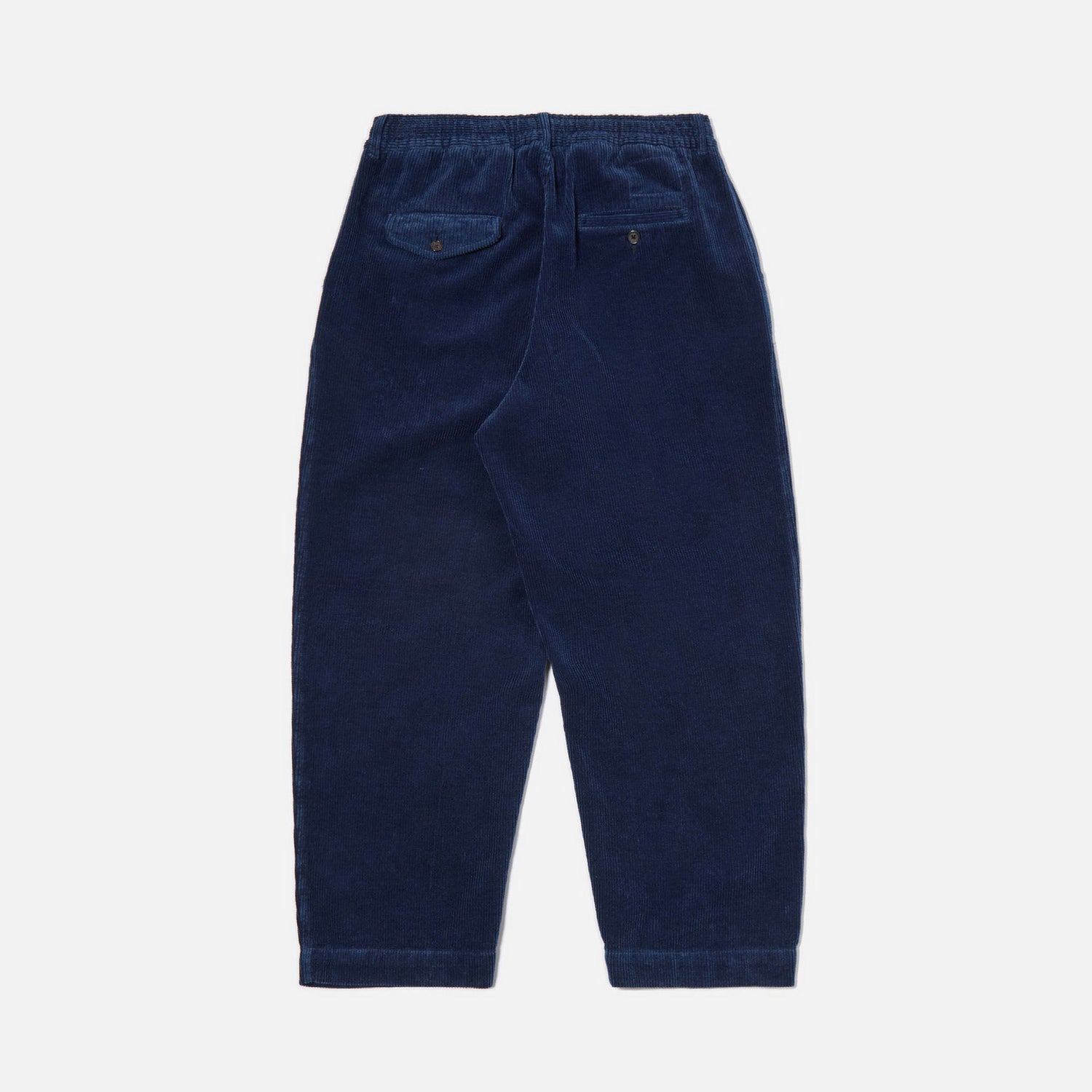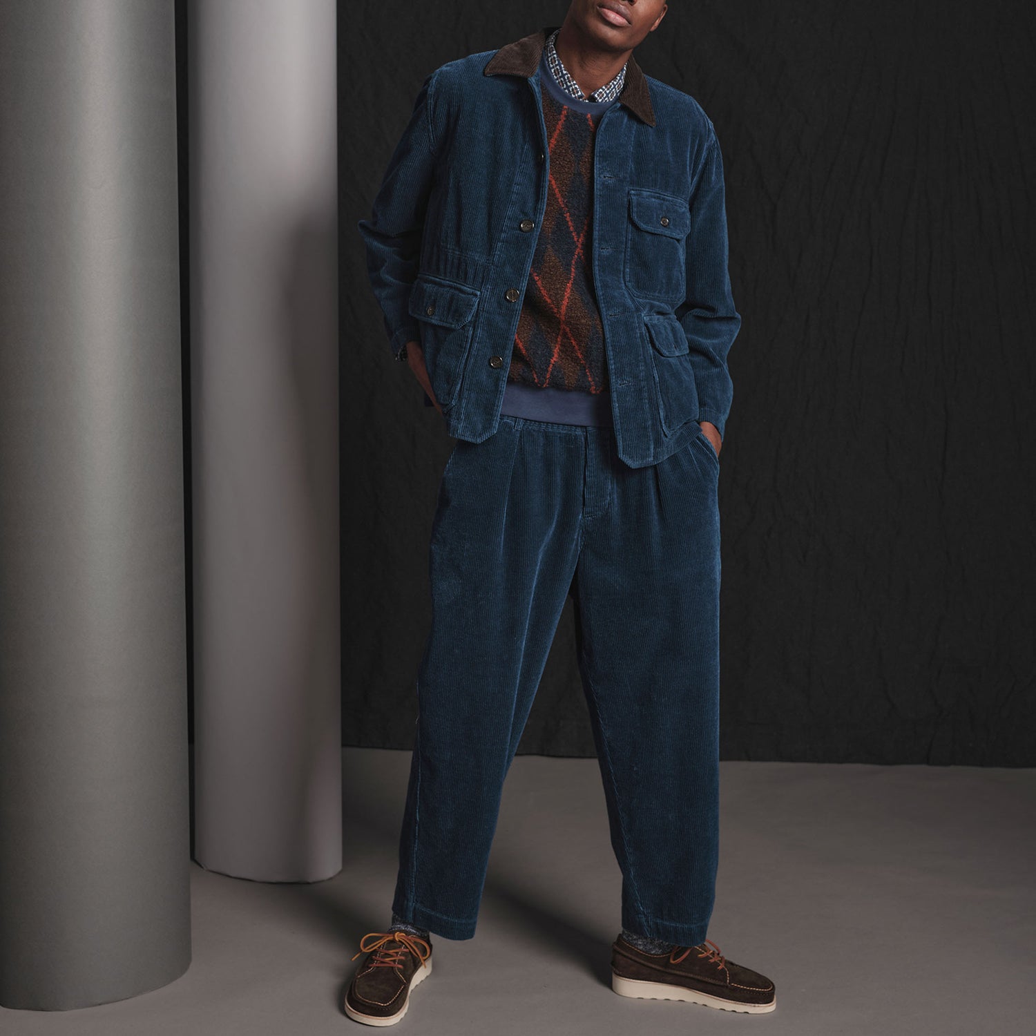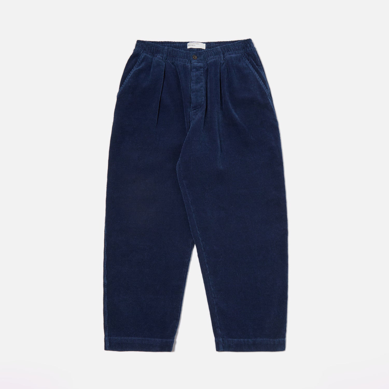 A modern classic with vintage soul. These single pleat, wide-leg trousers are cut with a subtle taper, creating a fuller silhouette than our Pleated Track Pant... effortlessly cool with a refined, relaxed fit. Crafted from a soft, 8-wale corduroy made in Spain using 100% recycled cotton, the fabric is dyed with natural indigo, designed to fade beautifully over time like your favourite jeans. The result? Trousers that wear in, not out—adding character with every outing.