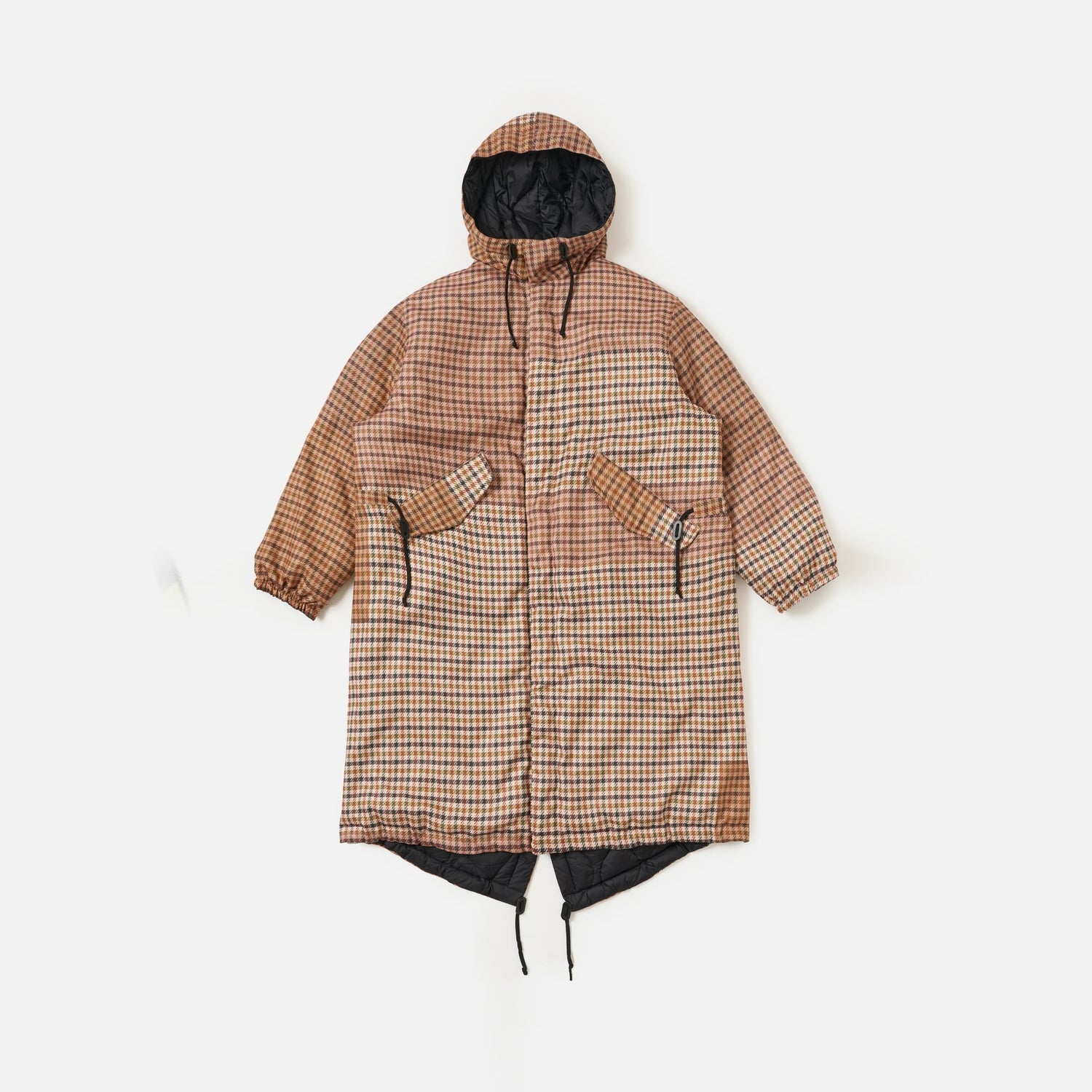 The reversible quilted soft-shell Parka, created in collaboration with Taion, features a faux patchwork tweed on one side, inspired by the classic warm tweed coat.