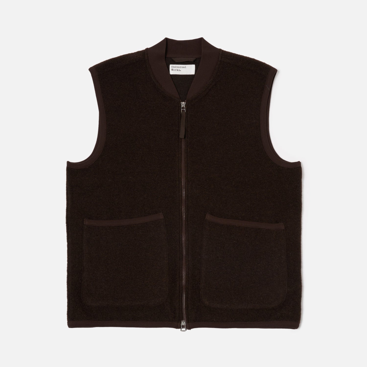 UNIVERSAL WORKS Zip Waistcoat in Brown