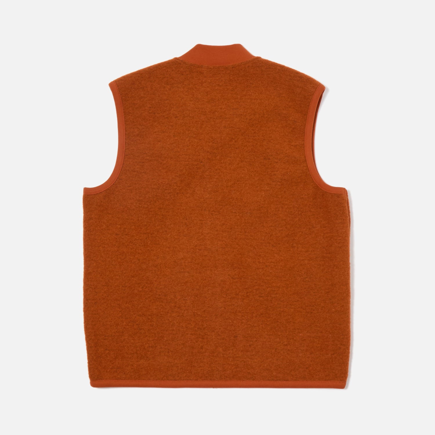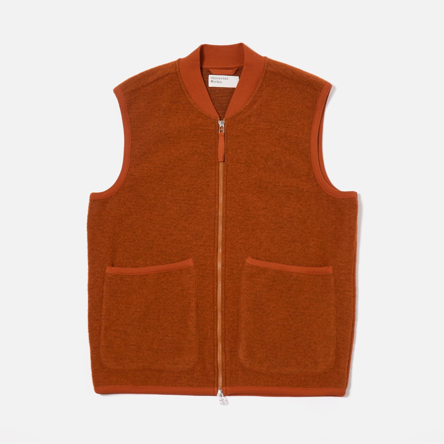 UNIVERSAL WORKS Zip Waistcoat in Rust