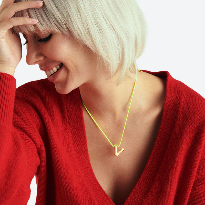 LA MOME BIJOU V Initial Joy Letter Necklace in Gold