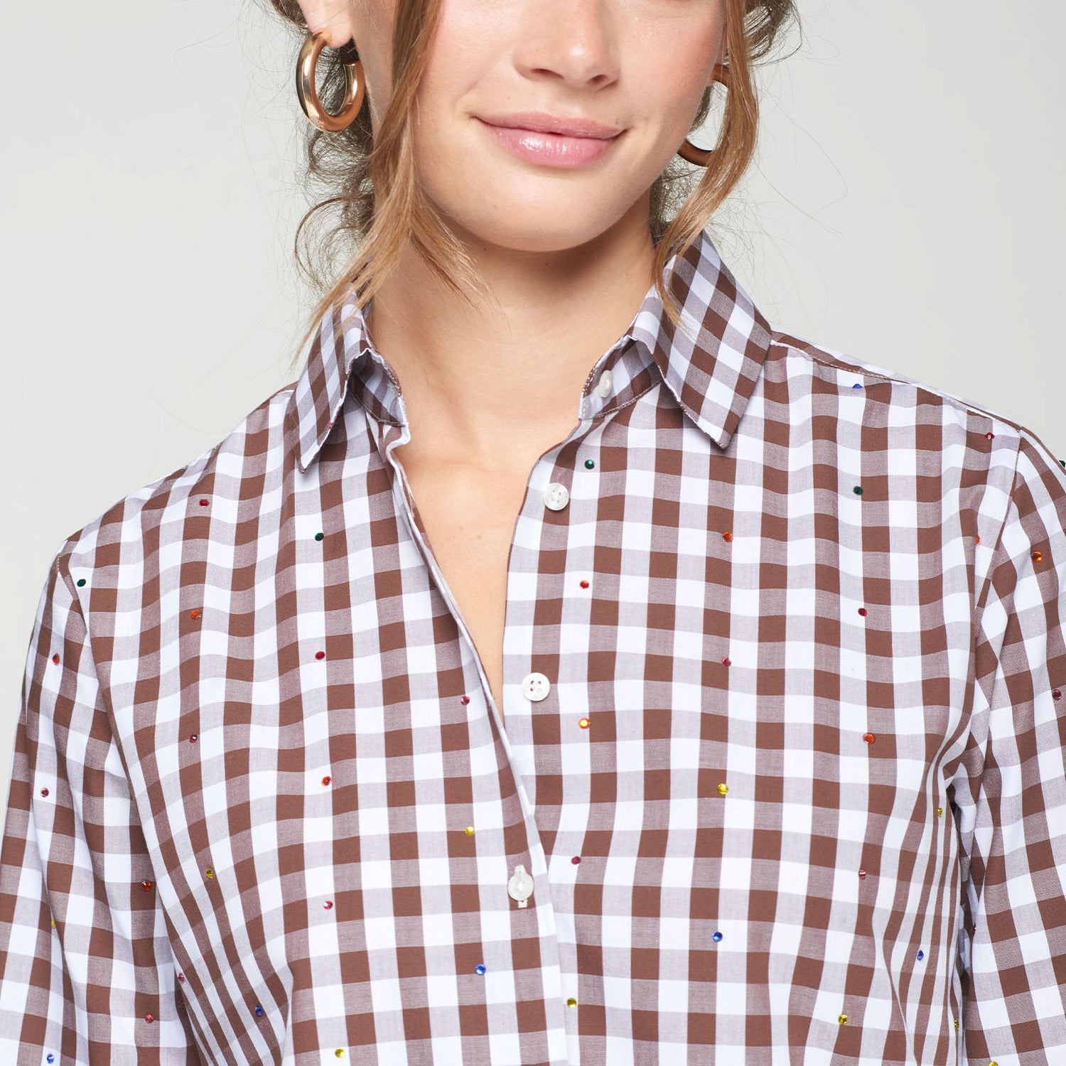 VILAGALLO Embellished Checked Shirt in Brown