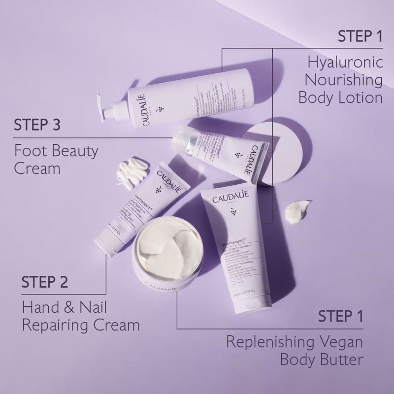 The Vinotherapist Replenishing Vegan Body Butter relieves itching and pampers the skin. It provides intense nourishment for 24 hours and repairs atopic-prone, dry skin for long-lasting comfort. Its rich, silky texture, enriched in plant lipids, soothes feelings of itching and tightness, leaving even the most sensitive skin soft and supple.