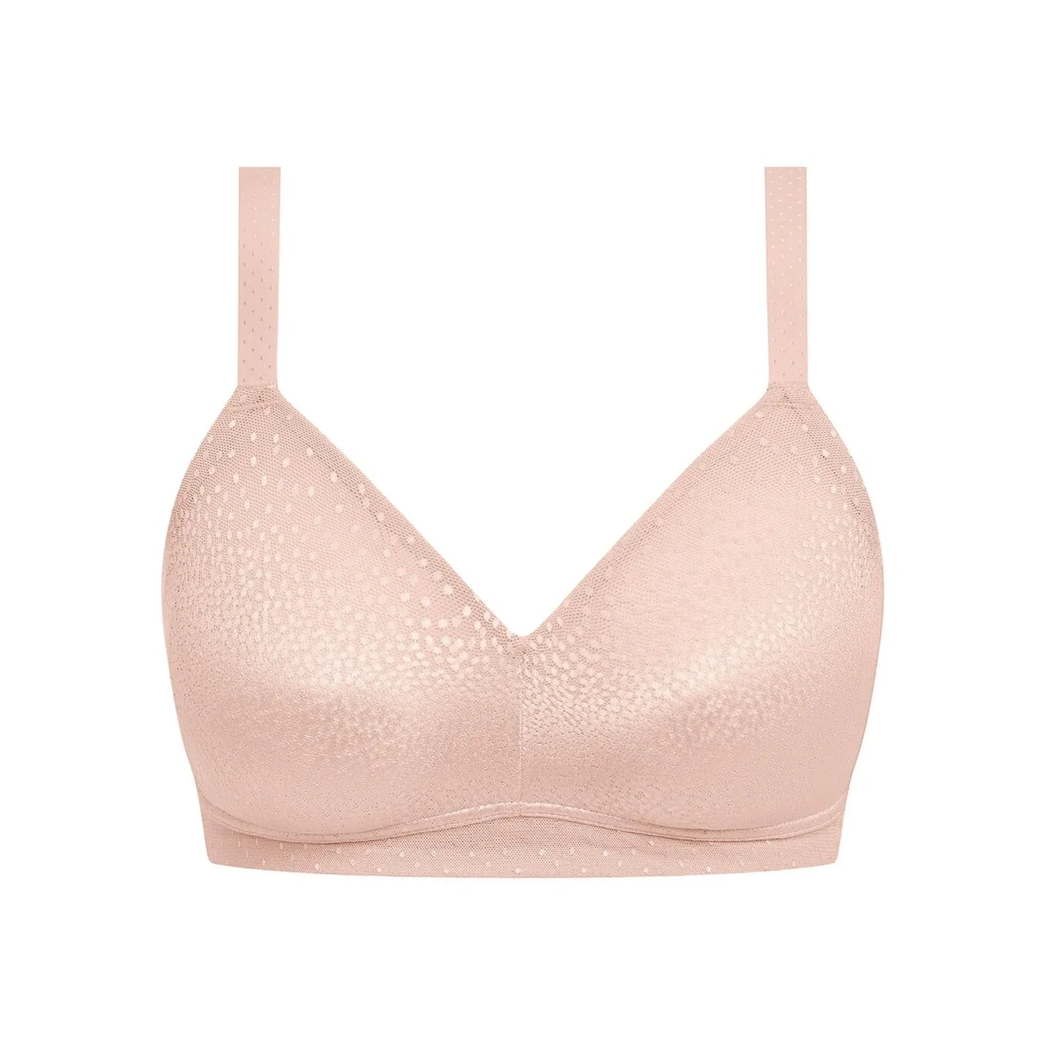 - Cups covered with pretty dot jacquard with accent sheen