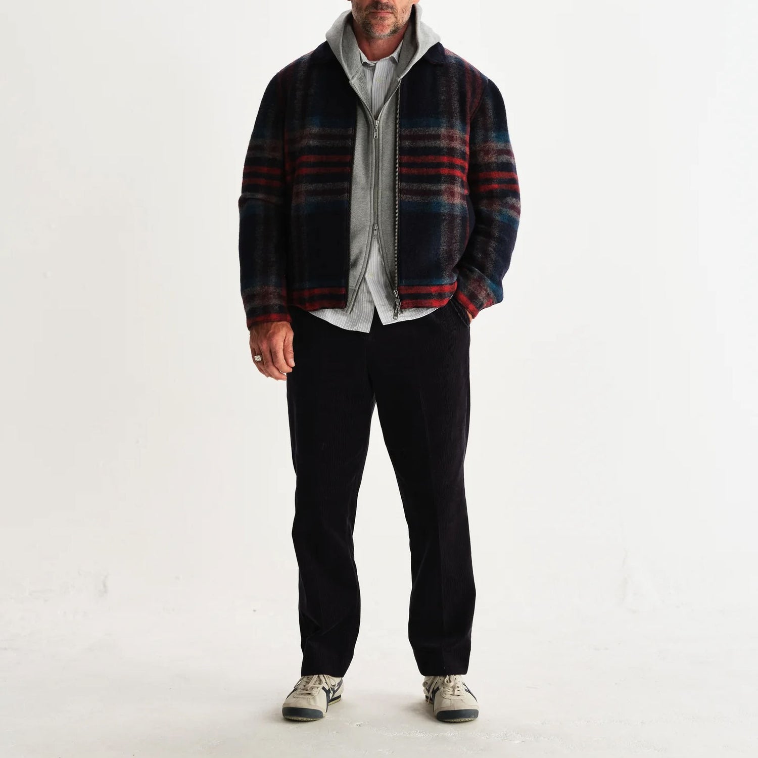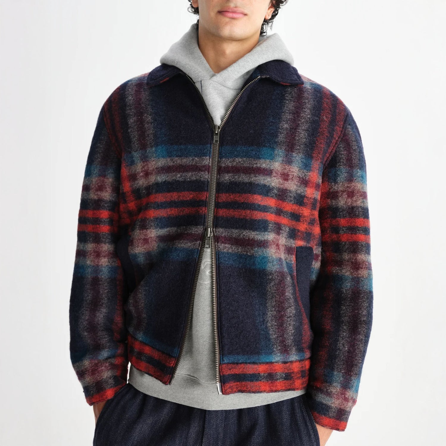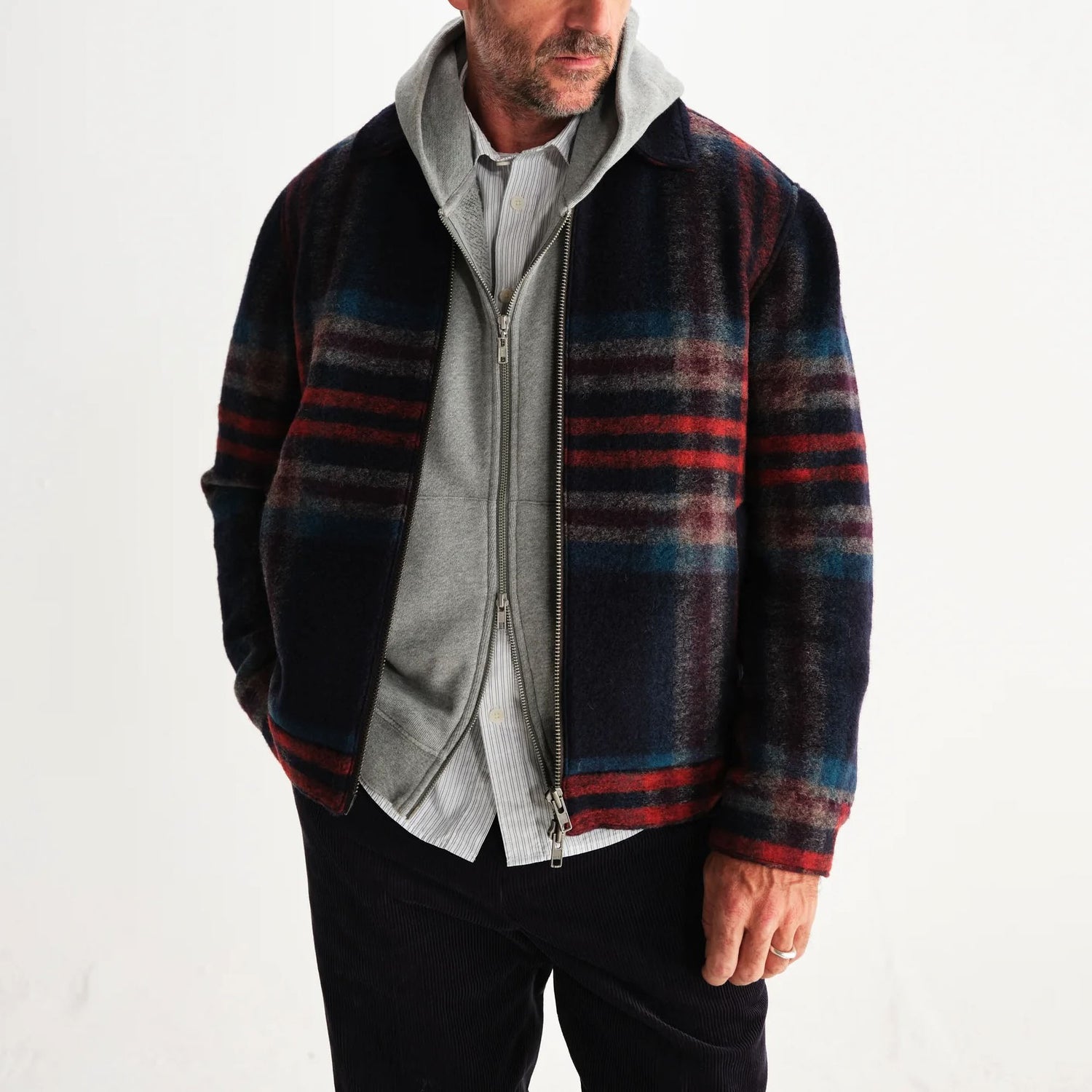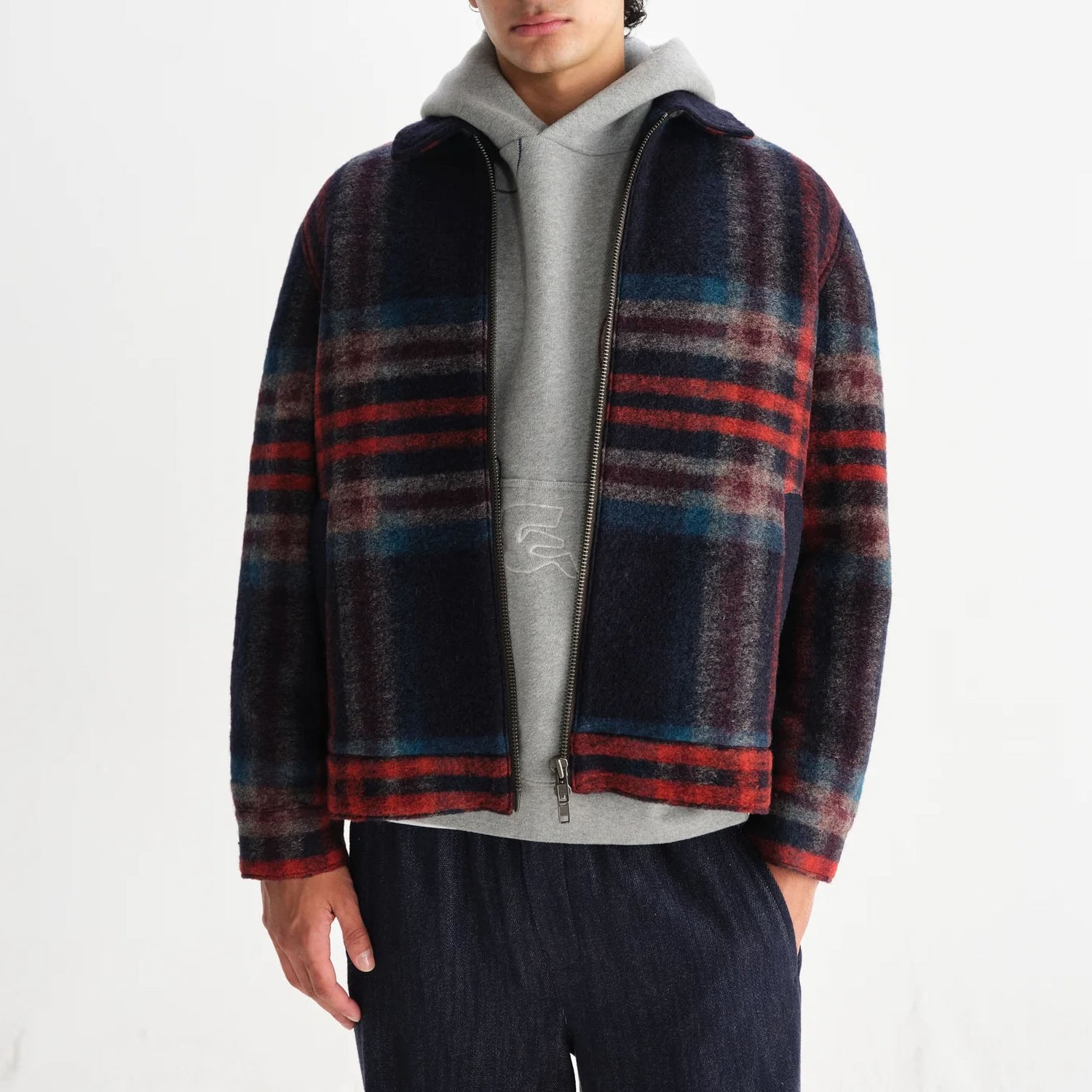 The Heath is here, and it’s sure to impress. Cut for a short, boxy fit, this navy and multicolour check option is constructed from a luxurious Italian knitted wool fabric. Fully lined with a clean silhouette, it’s finished with welt pockets, branded button cuffs and a two-way zip for versatile wear. The perfect winter layer!