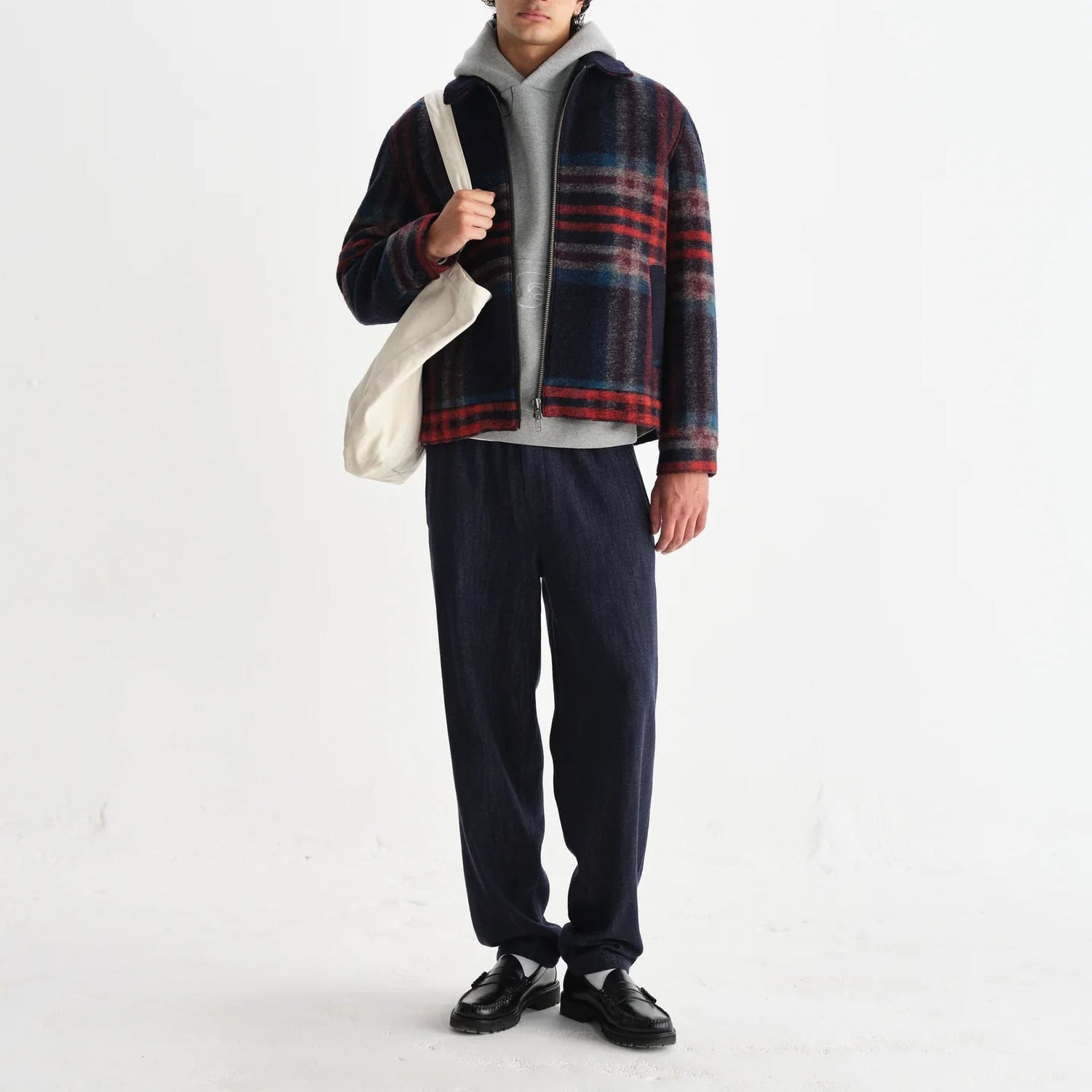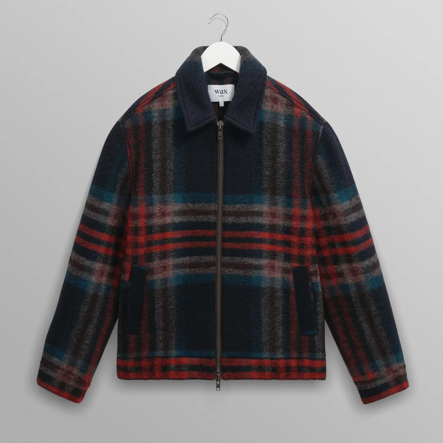 WAX LONDON Heath Wool Check Jacket in Navy and Multicolour