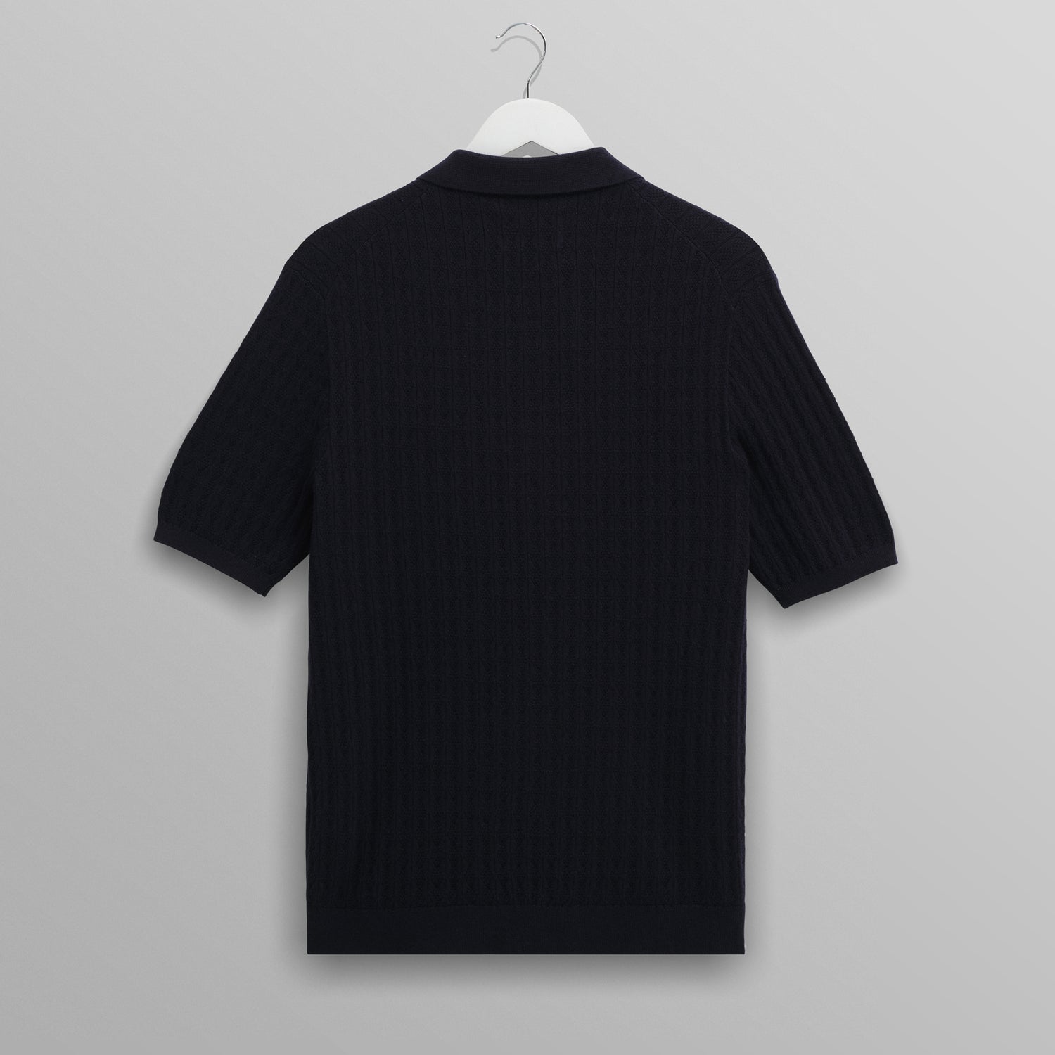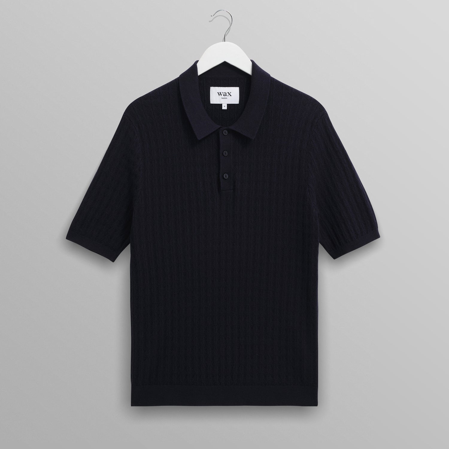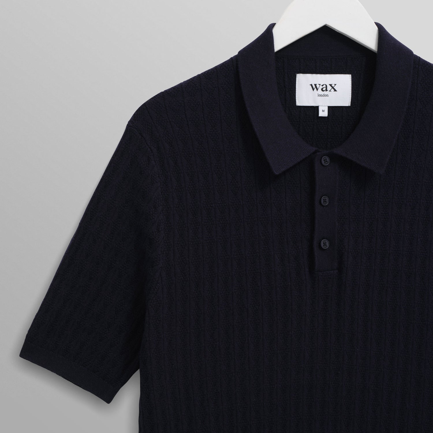 WAX LONDON Naples Diamond Stripe Knitted Polo in Navy
